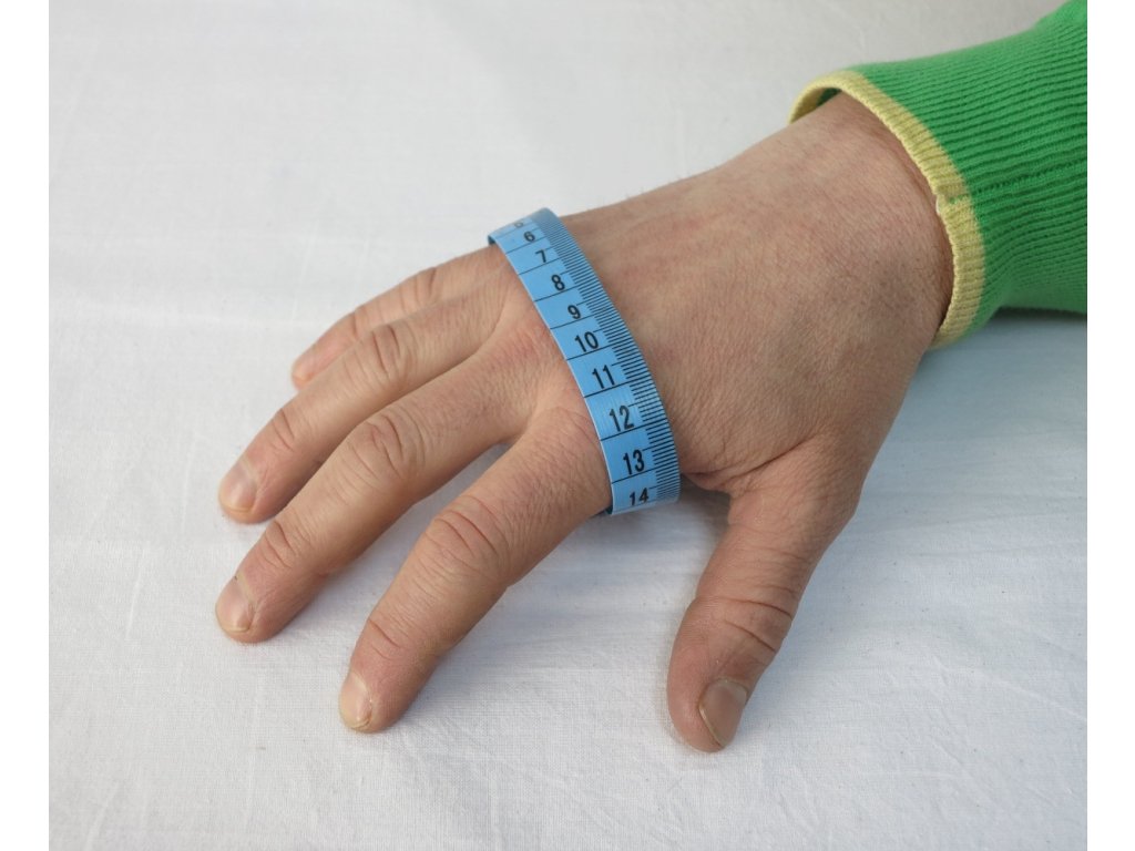 Změřte obvod dlaně vůdčí ruky (pravák pravou, levák levou) krejčovským metrem, tak jak je vidět na obrázku ve fotogalerii. Dlaň změřte v nejširší části kolem mírně vyklenutých záprstních kloubů. Naměřený obvod dlaně v centimetrech porovnejte s údaji v tabulce níže a zjistíte velikost rukavic ve francouzských coulech.