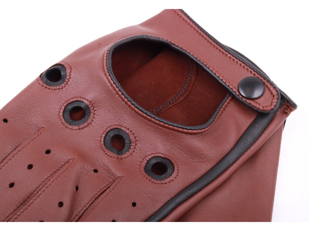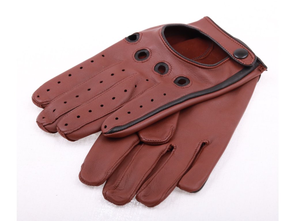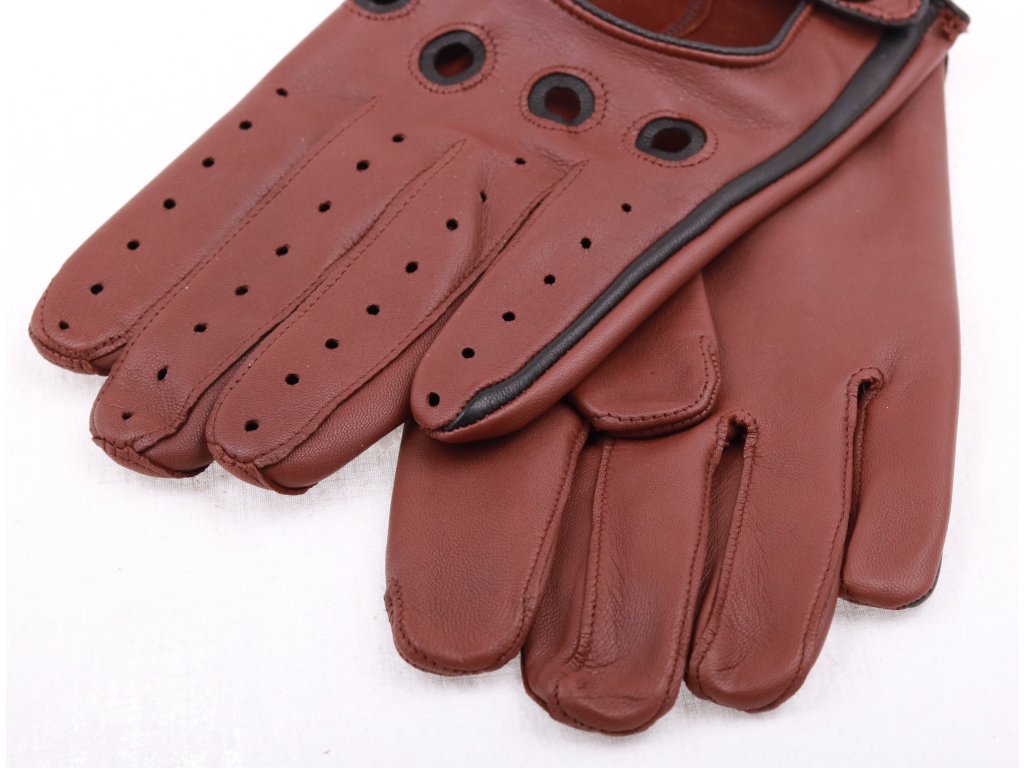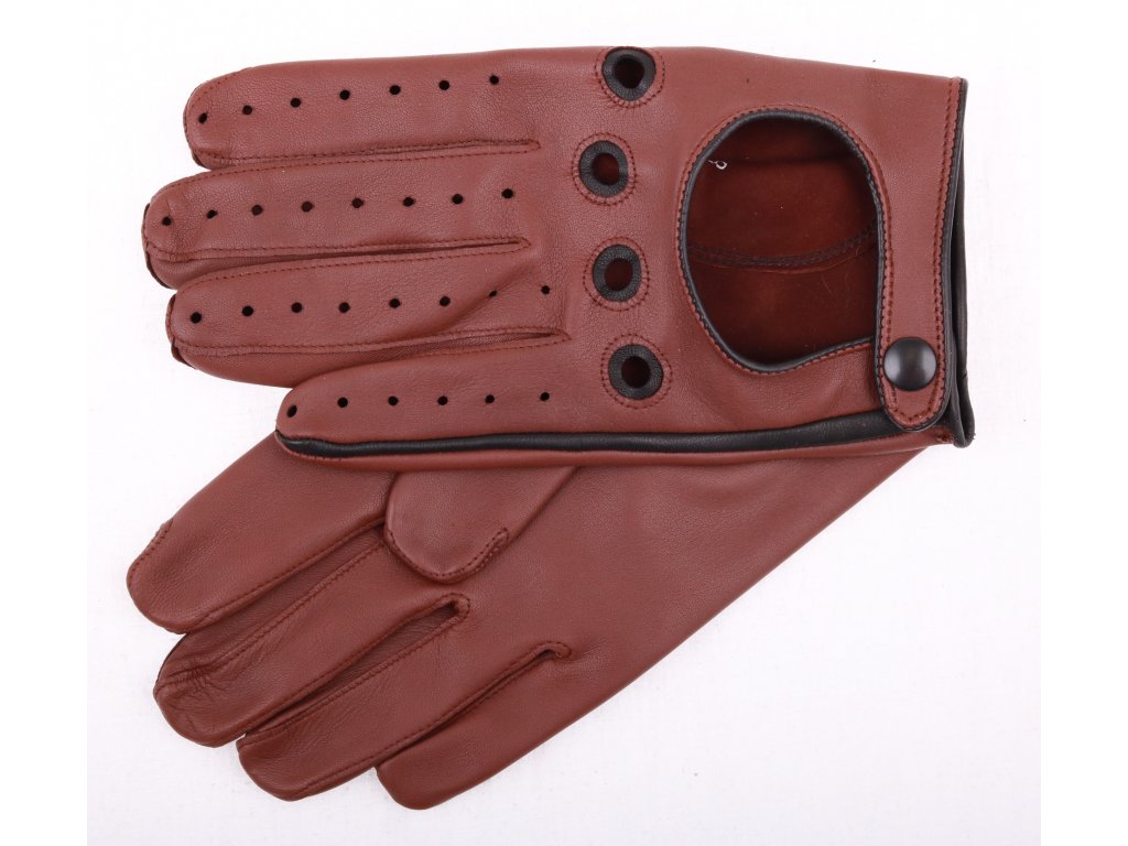 Pánské kožené řidičské rukavice PRESTON tmavě koňakově hnědé s černými detaily