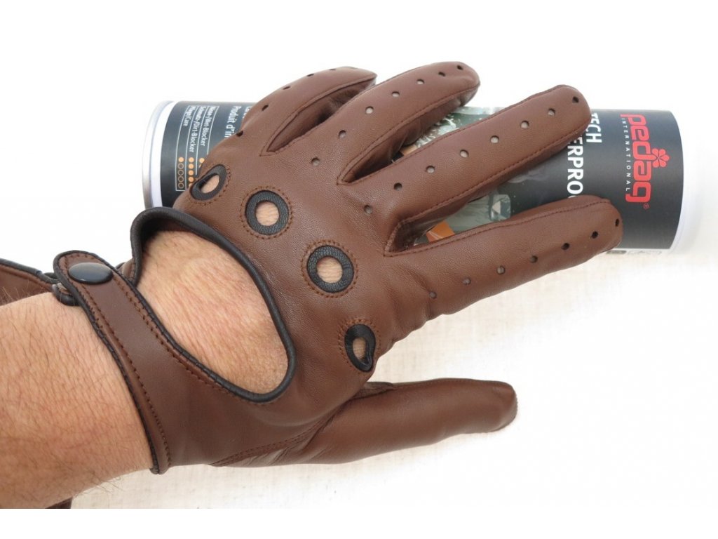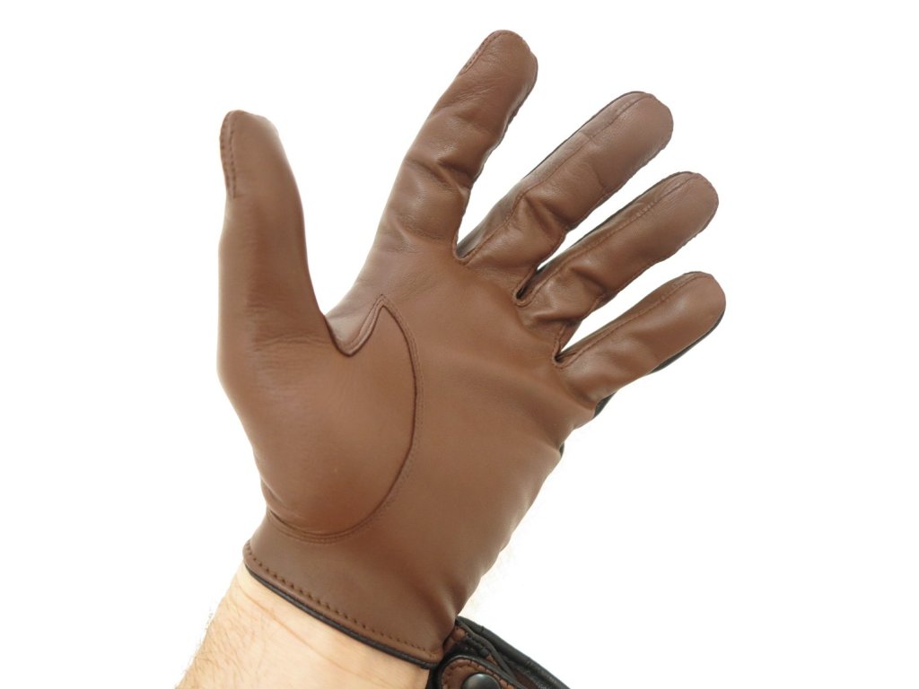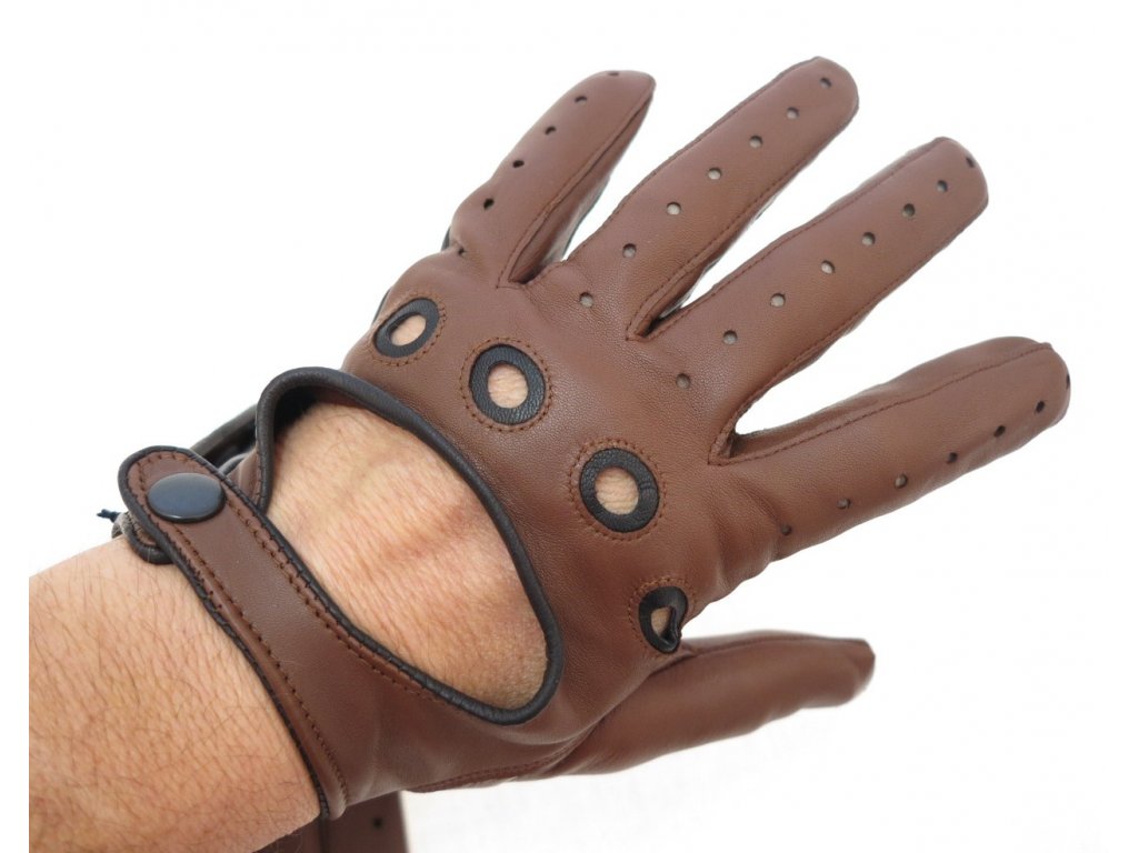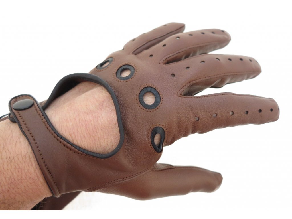 Pánské kožené řidičské rukavice PRESTON tmavě koňakově hnědé s černými detaily