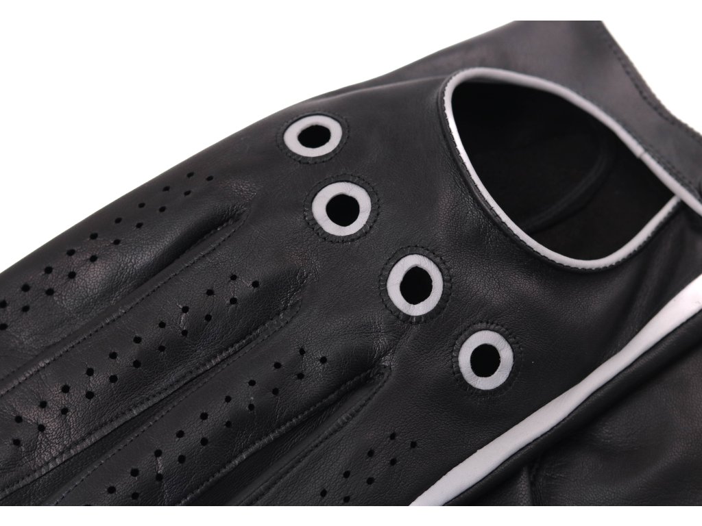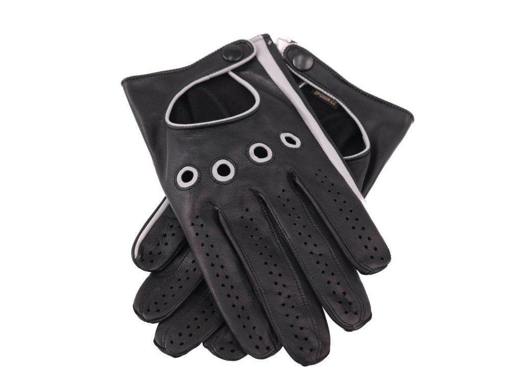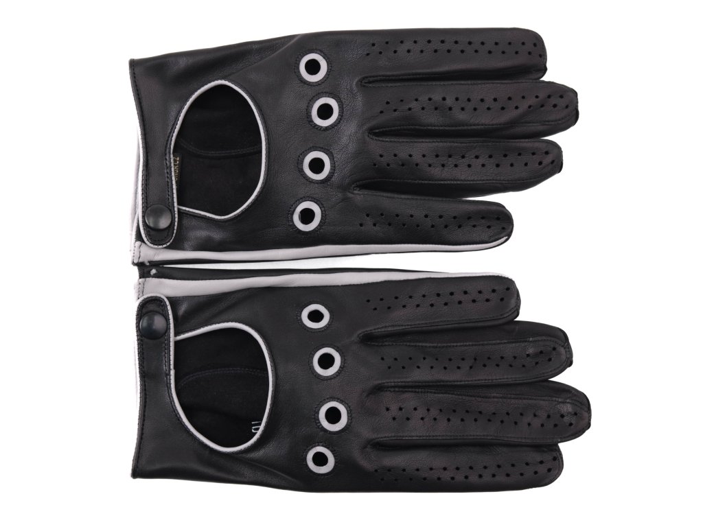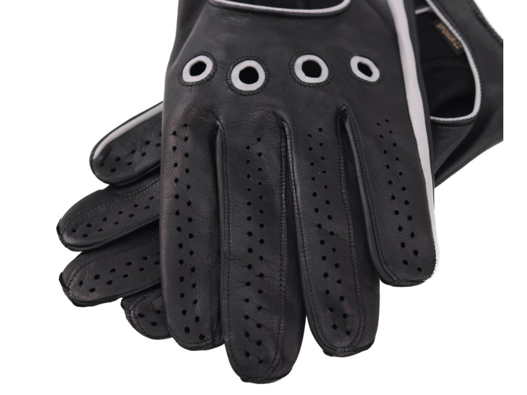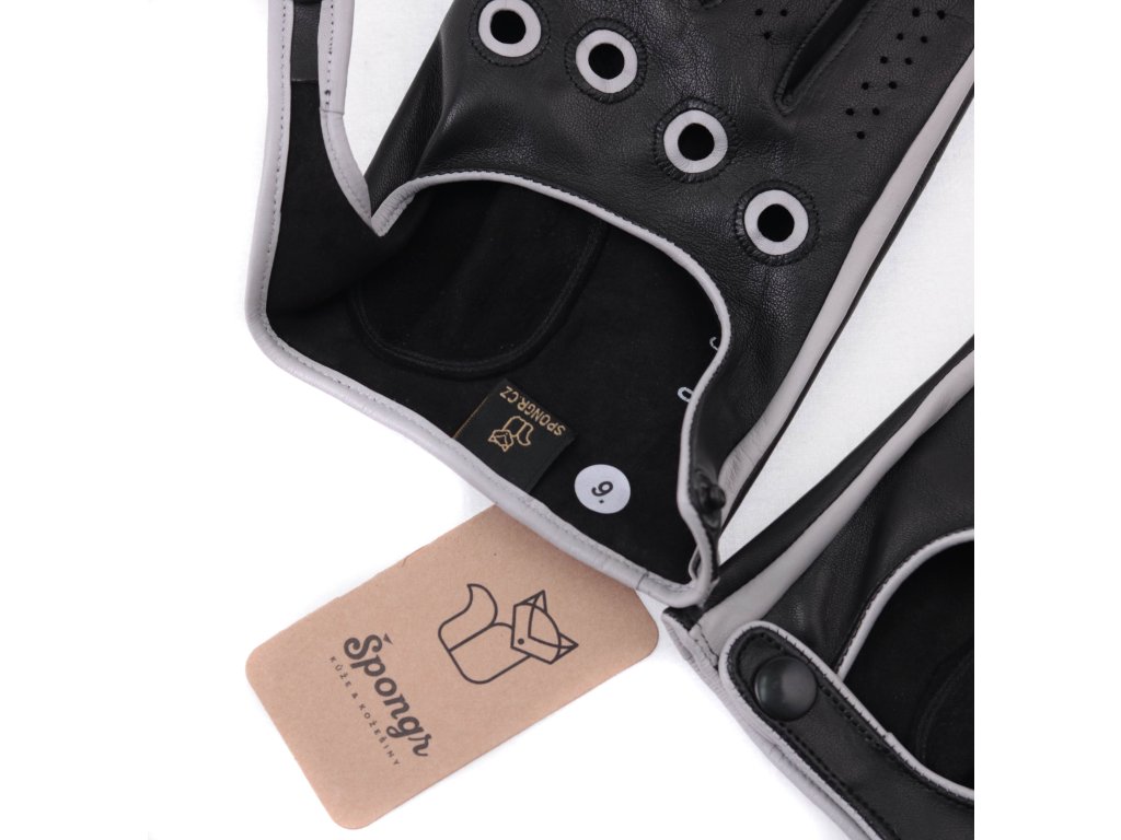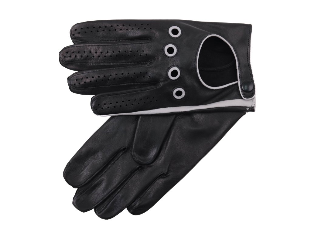 Pánské kožené řidičské rukavice PRESTON černé se světle šedými detaily