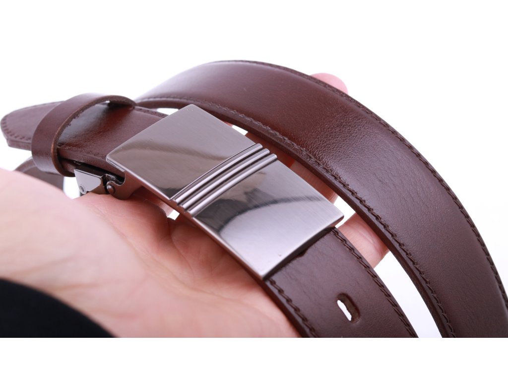 Pánský kožený opasek české výroby zhotovený z kvalitní italské hověziny. Klasická spona a hladká useň dělají z tohoto opasku elegantní doplněk nejen do obleku.
