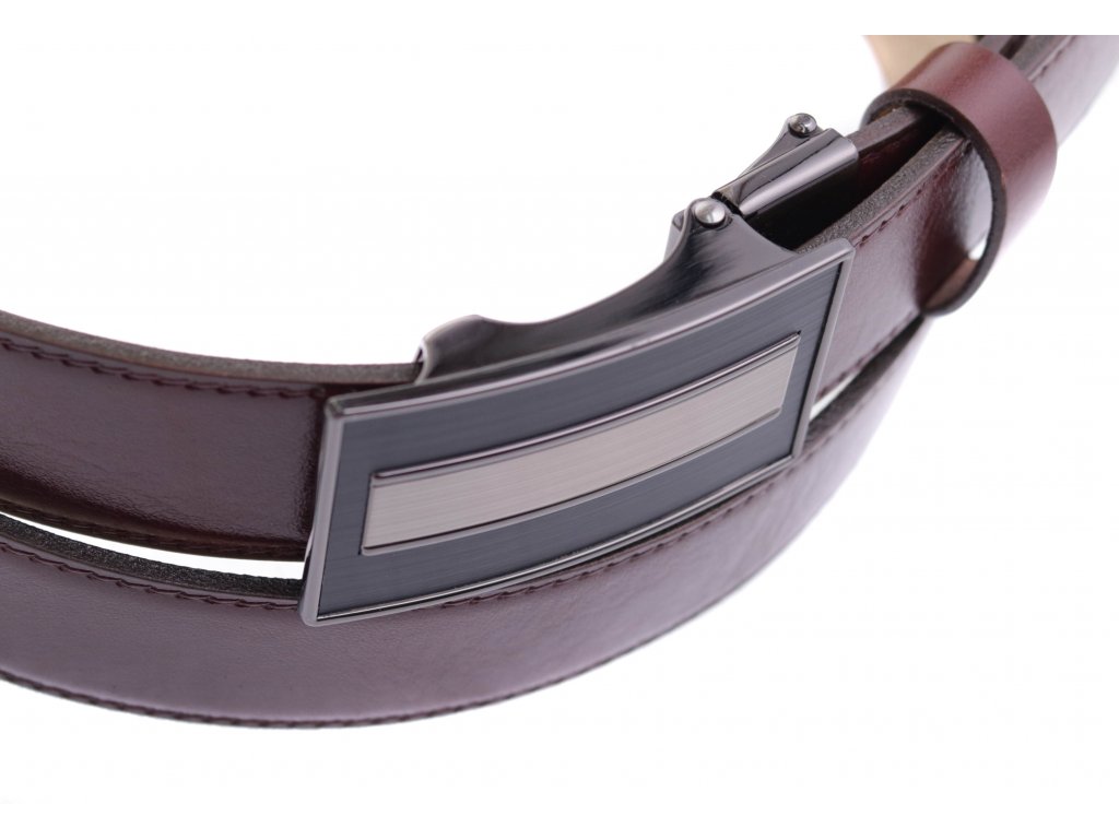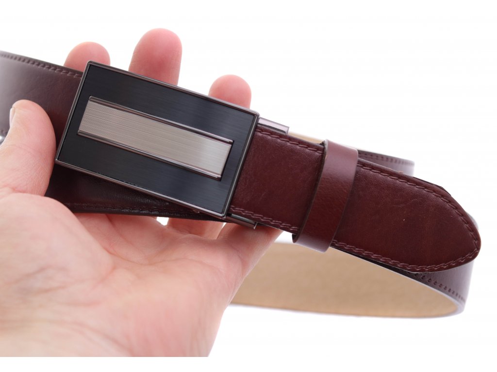 Automatická spona je specialitou tohoto koženého opasku, který díky tomu nemusí mít dírky. Spona se dá zapnout přesně v místě, kde potřebujete. Ovládání spony je snadné a intuitivní – vyklopením se spona uvolní, přitlačením k pásku se spona zajistí.
