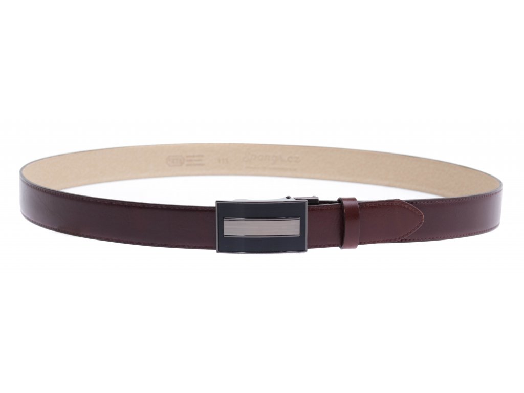 Pánský kožený opasek české výroby zhotovený z kvalitní italské hověziny. Plná spona AUTOMAT a hladká useň dělají z tohoto opasku elegantní doplněk nejen do společenských kalhot.
