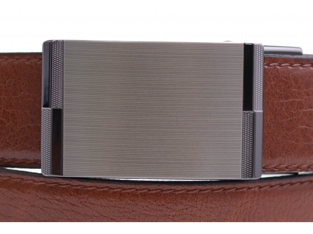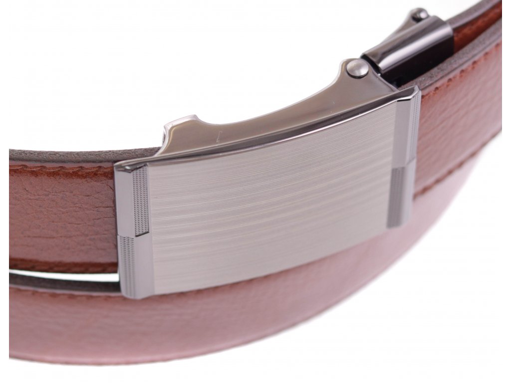 Automatická spona je specialitou tohoto koženého opasku, který díky tomu nemusí mít dírky. Spona se dá zapnout přesně v místě, kde potřebujete. Ovládání spony je snadné a intuitivní – vyklopením se spona uvolní, přitlačením k pásku se spona zajistí.