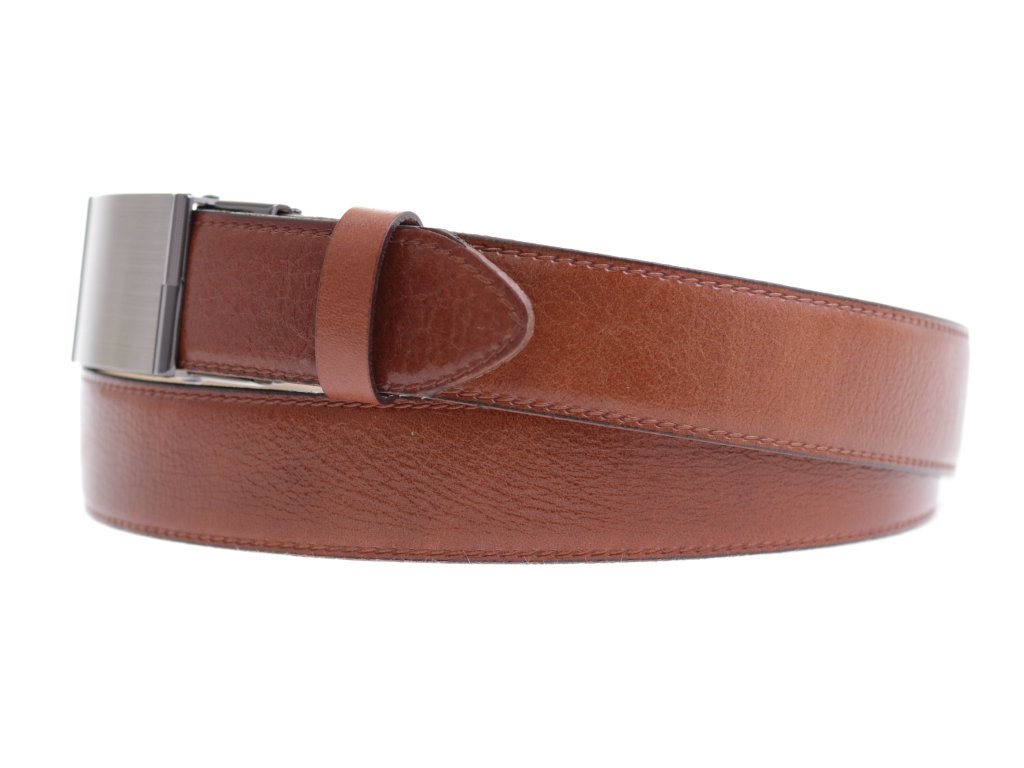 Pánský kožený opasek české výroby zhotovený z kvalitní italské hověziny. Plná spona AUTOMAT a hladká useň dělají z tohoto opasku elegantní doplněk nejen do společenských kalhot.