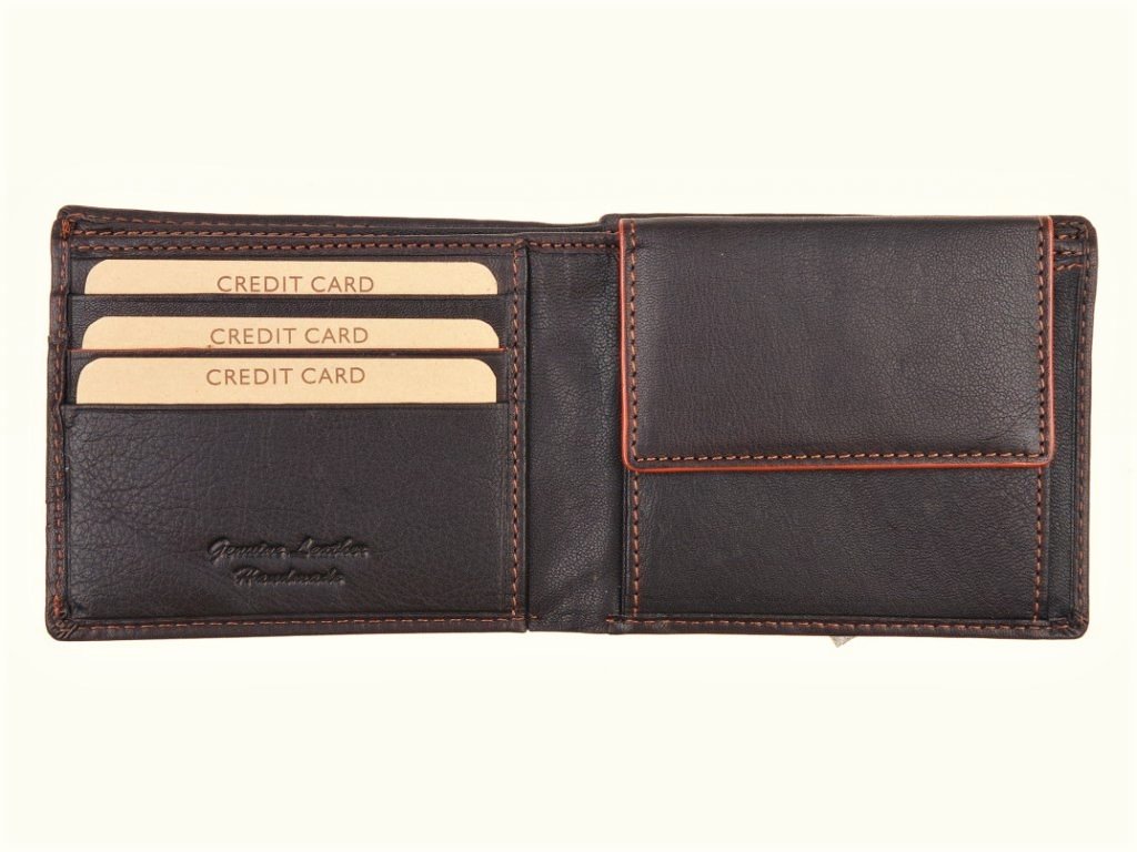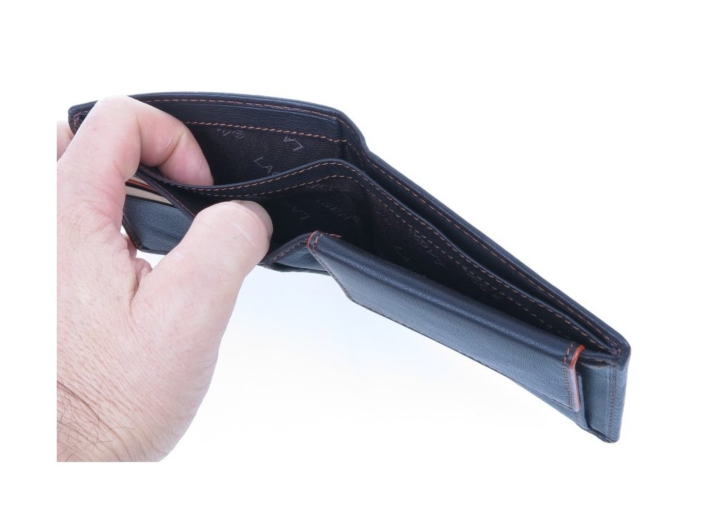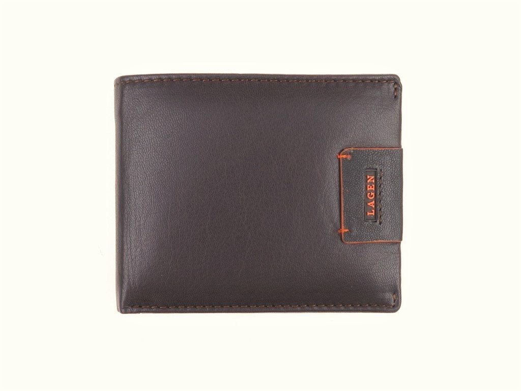 Moderní pánská kožená peněženka v hnědé barvě s oranžovými detaily od značky Lagen. Jednoduchá a praktická - to charakterizuje tuto koženou peněženku otevírající se na šířku a s nejnutnějším počtem přihrádek.