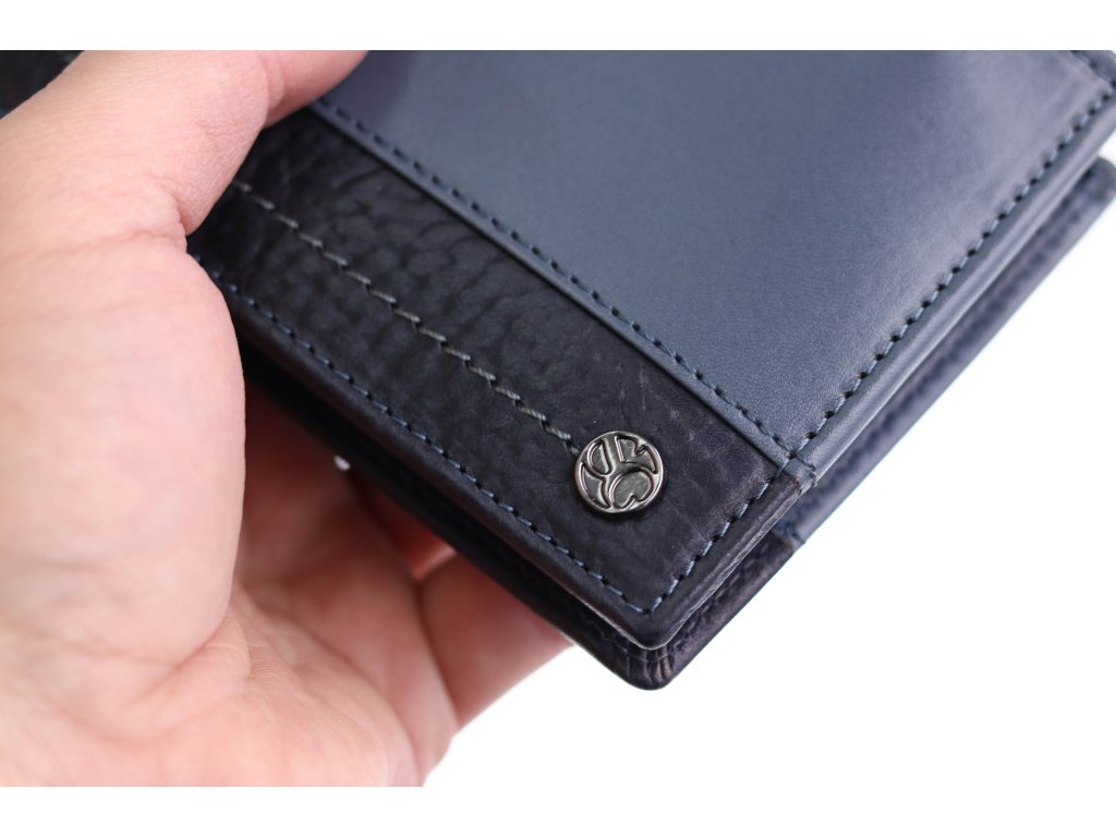 Přední stranu této na šířku orientované peněženky zdobí kovové logo výrobce. Peněženku obdržíte v originální pevné papírové krabičce od výrobce.