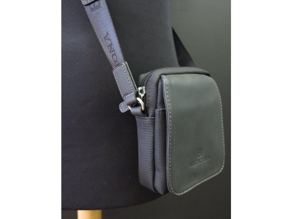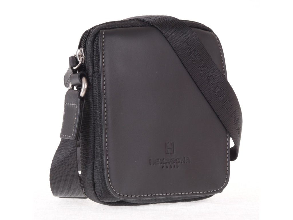 Malá pánská taštička přes rameno Hexagona 299363 černá kůže a nylon