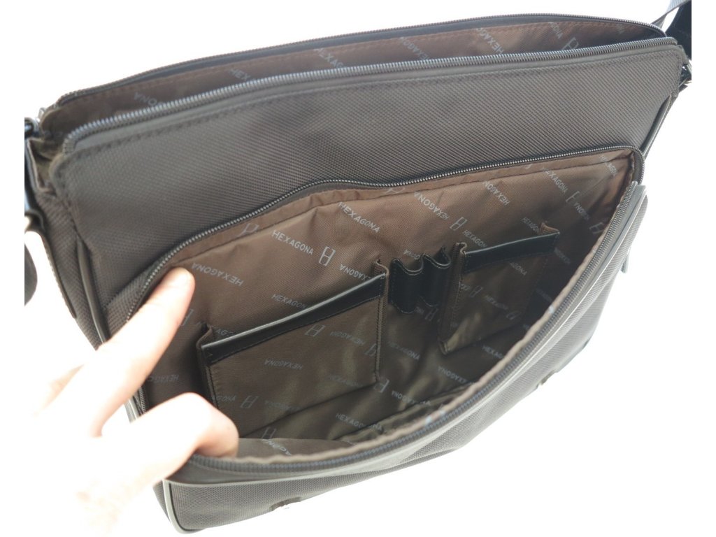 - zipová kapsa pod klopnou s organizérem obsahujícím větší přihrádku na peněženku, dvě poutka na pera, přihrádku na telefon