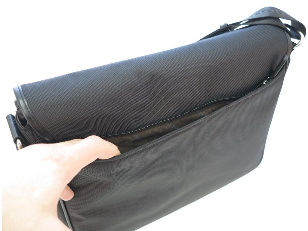 Pánská crossbody brašna z otěruodolného nylonu (Cordury) s nastavitelným ramenním popruhem. Taška se nosí křížem přes tělo nebo jen přes rameno.