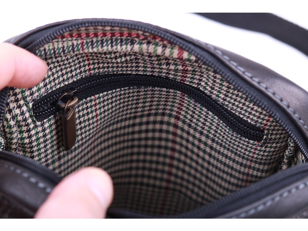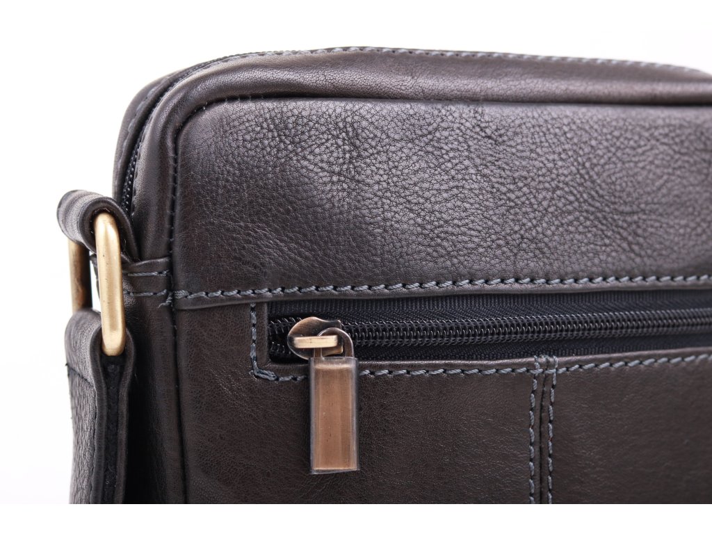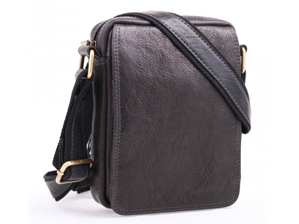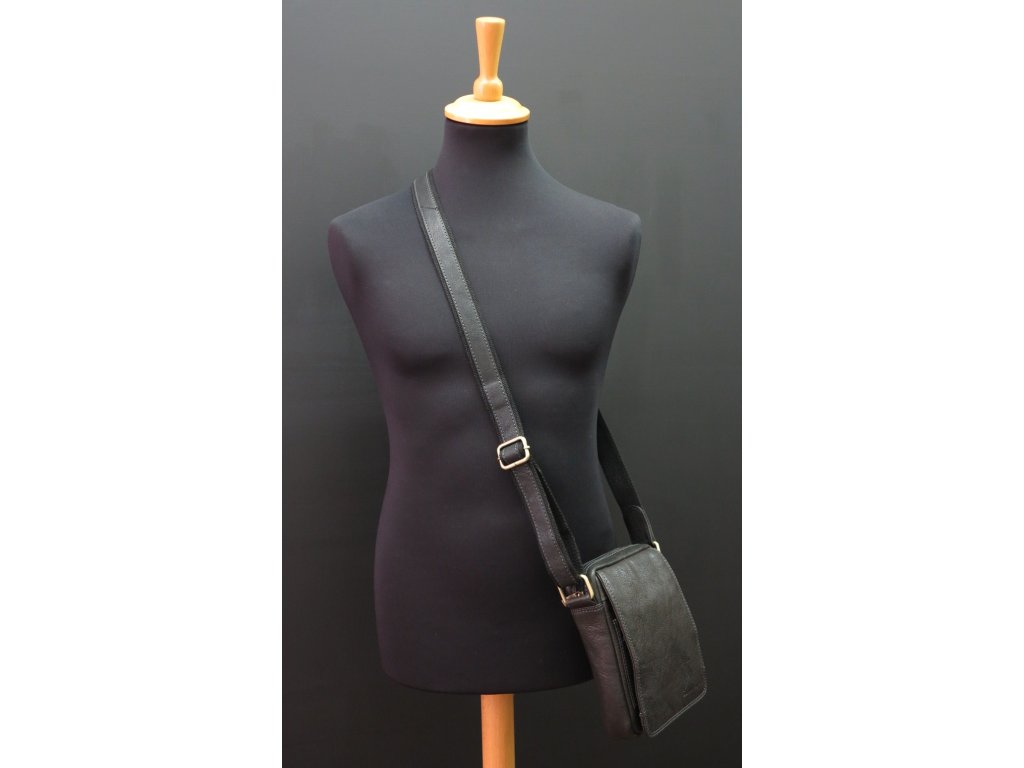 Pánská crossbody taška z hladké hověziny v černé barvě s nastavitelným ramenním popruhem. Taška se nosí křížem přes tělo nebo jen přes rameno.