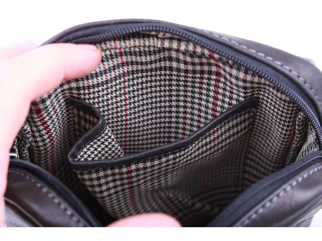 - pod klopnou se nachází zipová kapsa a organizér se třemi přihrádkami na karty, s jednou přihrádkou na pero a s jednou malou přihrádkou
