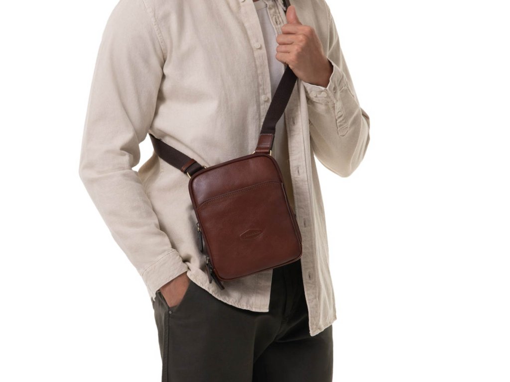 Menší kožená taštička přes rameno zaujme moderním a elegantním vzhledem. Její kompaktní design z ní dělá praktický doplněk na každý den – perfektně se hodí do města i pro volný čas.