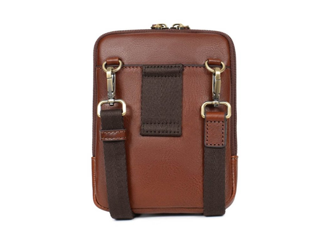 Malá kožená taštička přes rameno zaujme moderním zpracováním, kde je popruh k tělu tašky připevněn stylovými karabinami. Tento detail jí dodává trendy vzhled a zvyšuje pohodlí při nošení. Elegantní a kompaktní design dělá z tašky ideální doplněk pro každodenní použití – do města i pro volný čas.