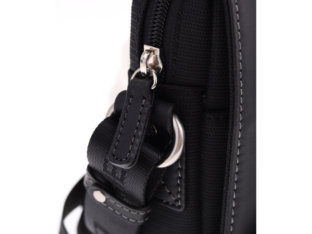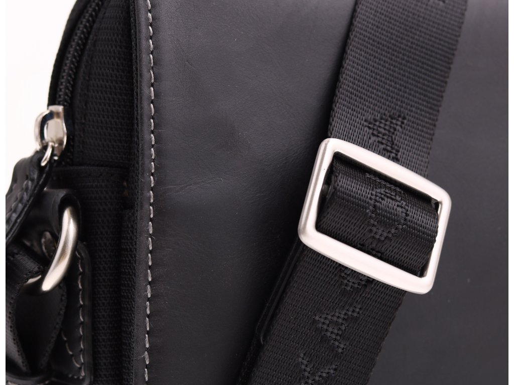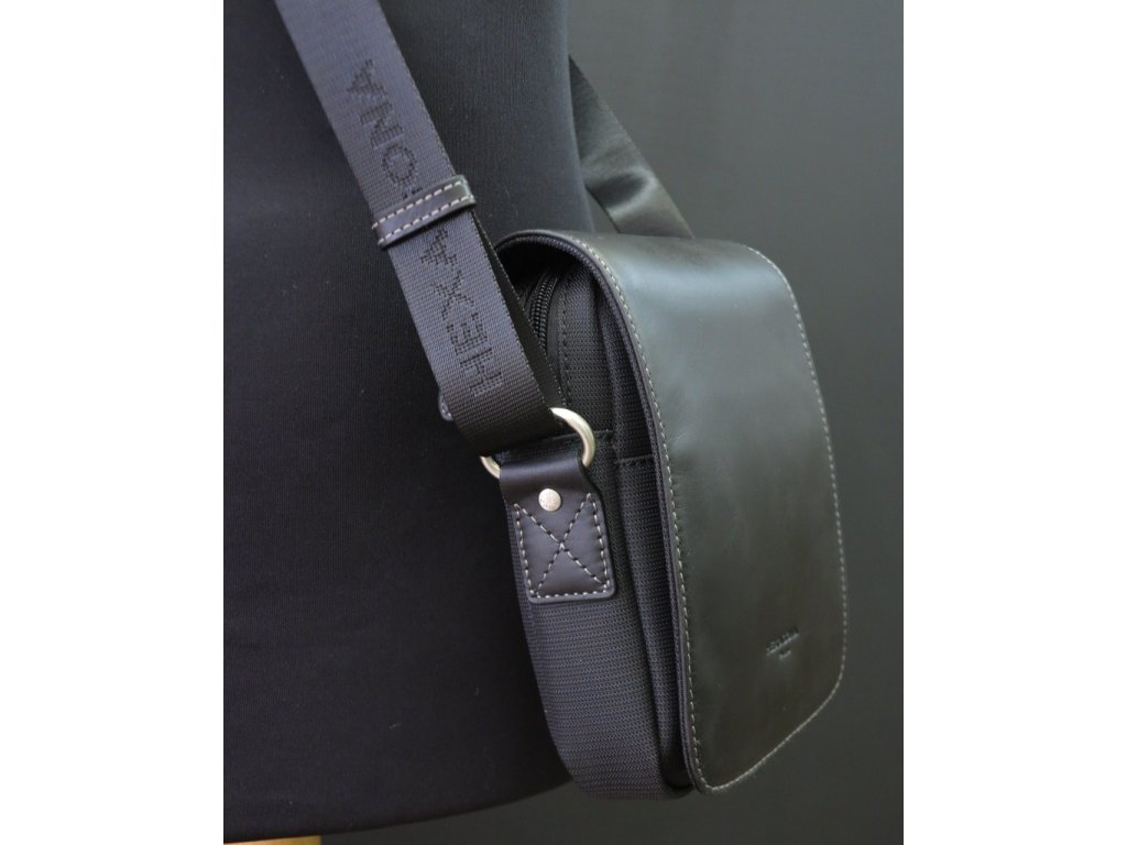 Pánská crossbody taška z otěruvzdorného nylonu (Cordury) s koženou klopnou a nastavitelným ramenním popruhem. Taška se nosí křížem přes tělo nebo jen přes rameno.