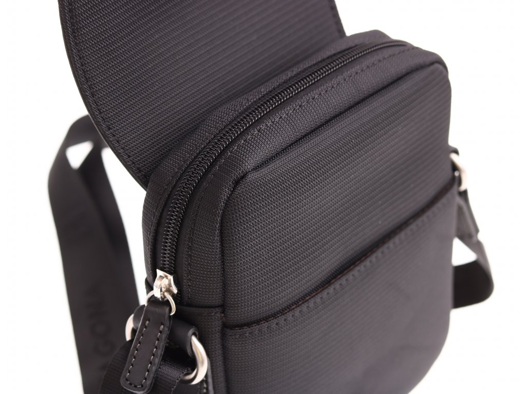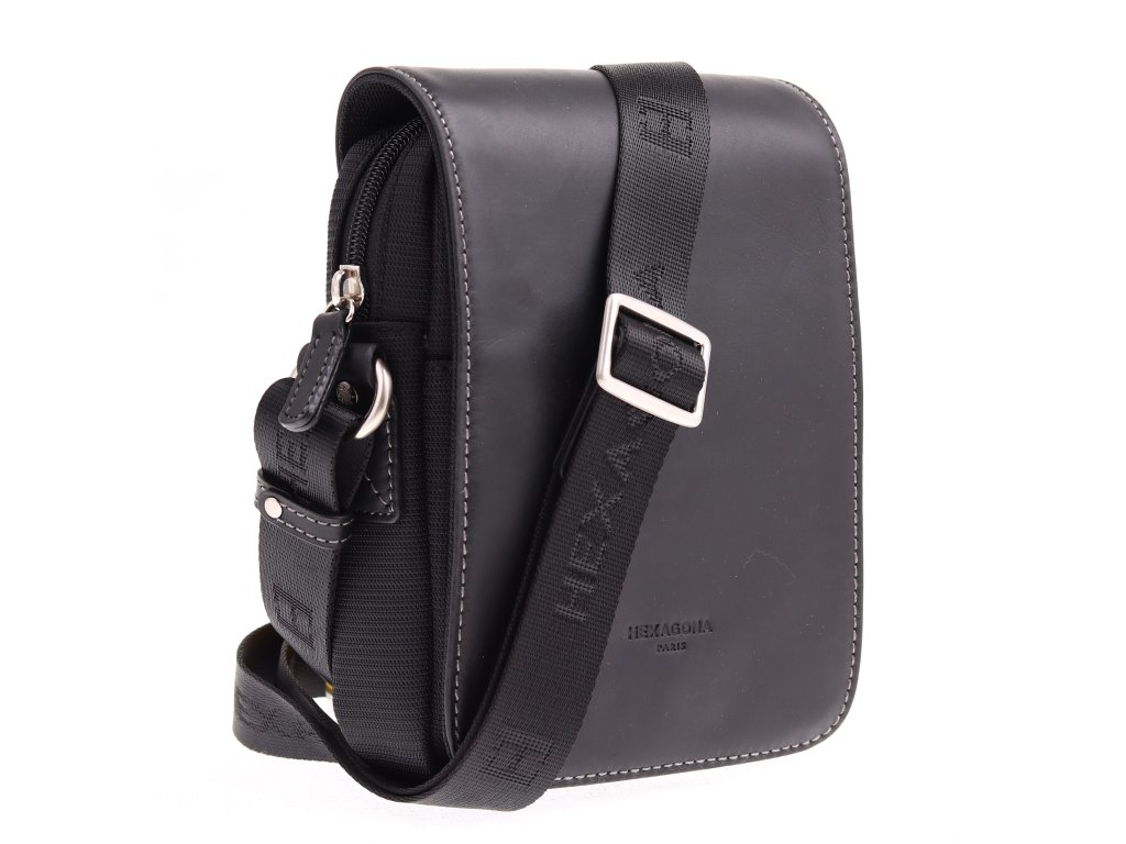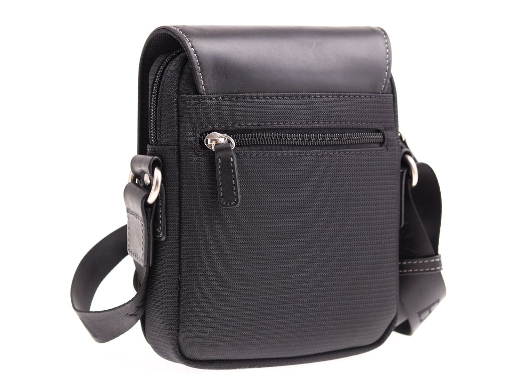 Pánská textilní crossbody taška Hexagona 299164 černá s koženou klopnou