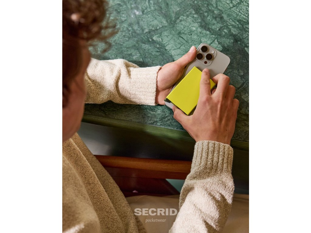 Kovové púzdro na karty SECRID Cardprotector for Magsafe Lime žiarivo žlté