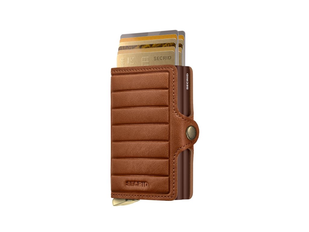 Dvojité pouzdro na karty SECRID PREMIUM Twinwallet Emboss Lines Cognac koňakově hnědé