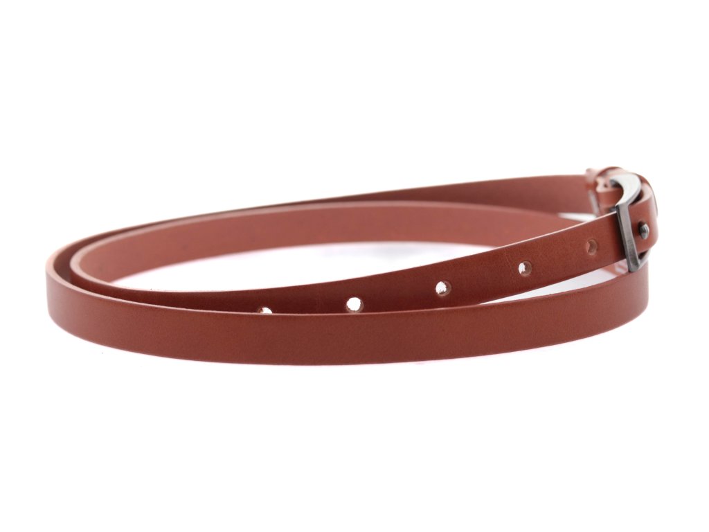 Dámsky kožený opasok českej výroby zhotovený z kvalitnej jemnej hovädziny. S týmto elegantným úzkym opaskom získate nadčasový módny doplnok do nohavíc alebo cez šaty.