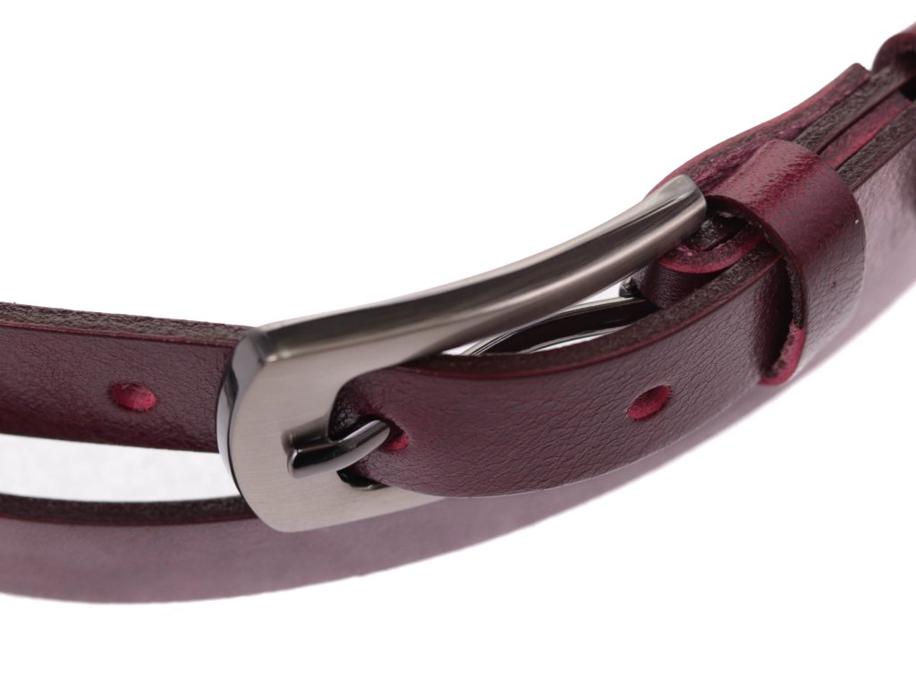 Dámsky kožený opasok českej výroby zhotovený z kvalitnej jemnej hovädziny. S týmto elegantným úzkym opaskom získate nadčasový módny doplnok do nohavíc alebo cez šaty.