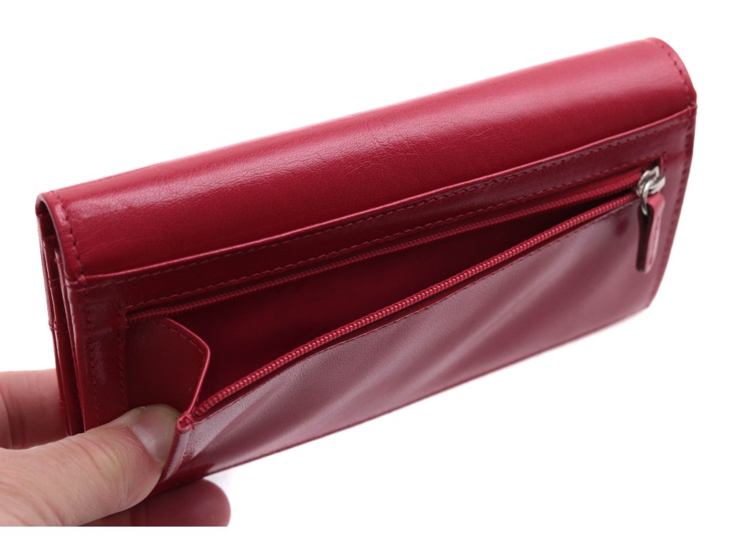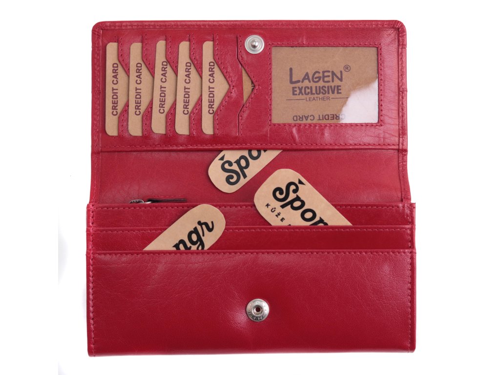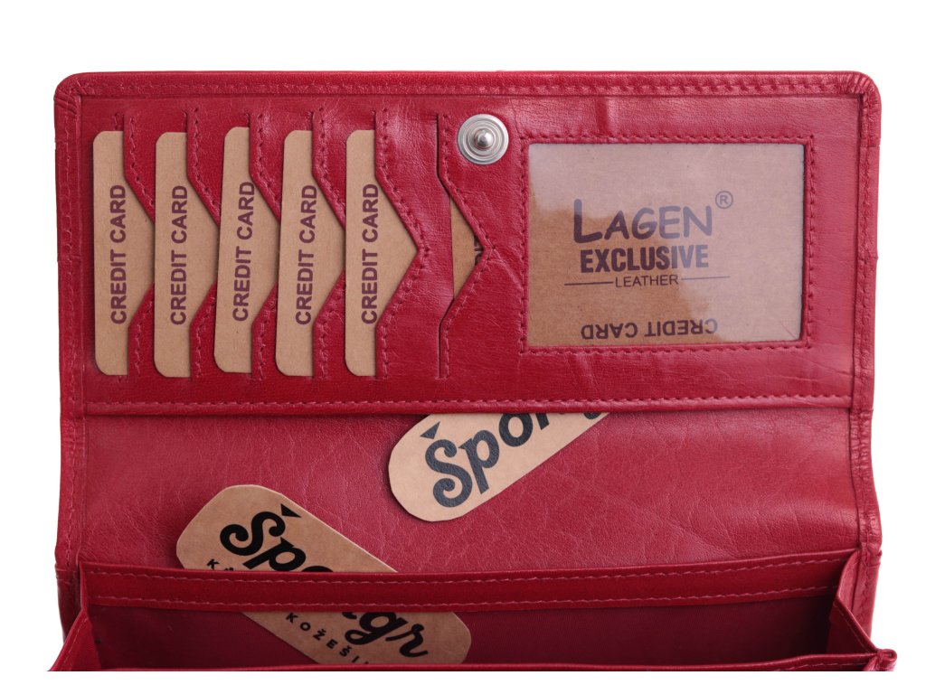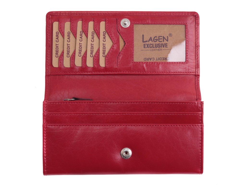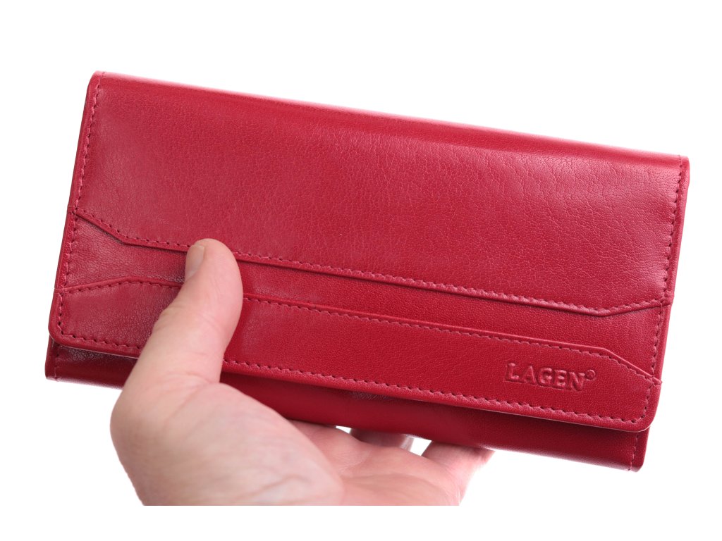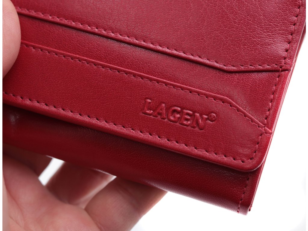 Dámska kožená peňaženka Lagen W 2025 IT červenej farby. Dámske kožené peňaženky Lagen sú kvalitne spracované a pojmú pojme veľké množstvo kariet a dokladov. Peňaženky Lagen zaujmú používaním zaujímavých farebných kombinácií, štruktúr povrchu a netradičných povrchových úprav usní.