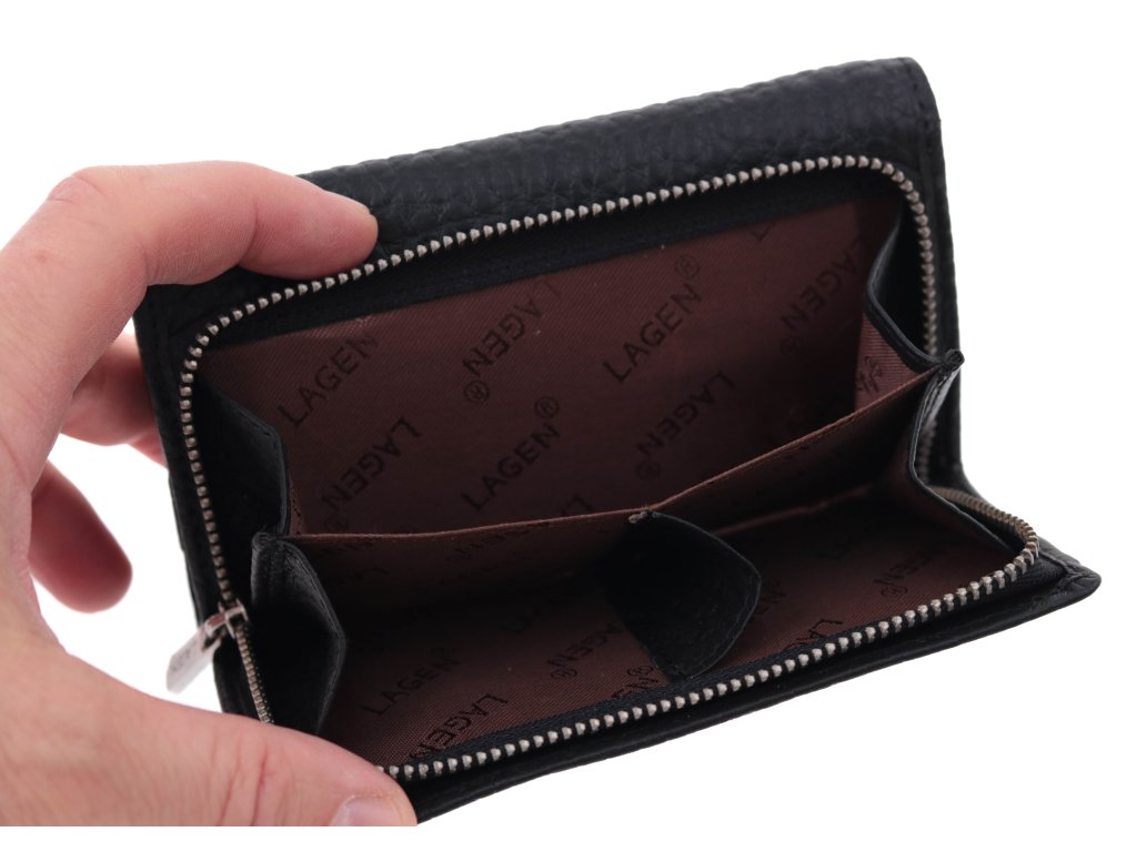 Jednoduchá a elegantná dámska kožená peňaženka od kvalitnej značky Lagen je vybavená veľkým množstvom priehradok na karty. Určite oceníte zvonku prístupný mincovník na zips.