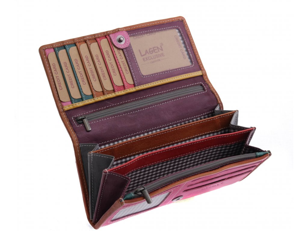 Dámska kožená peňaženka Lagen V-17/DK Framing Caramel Multi farebná