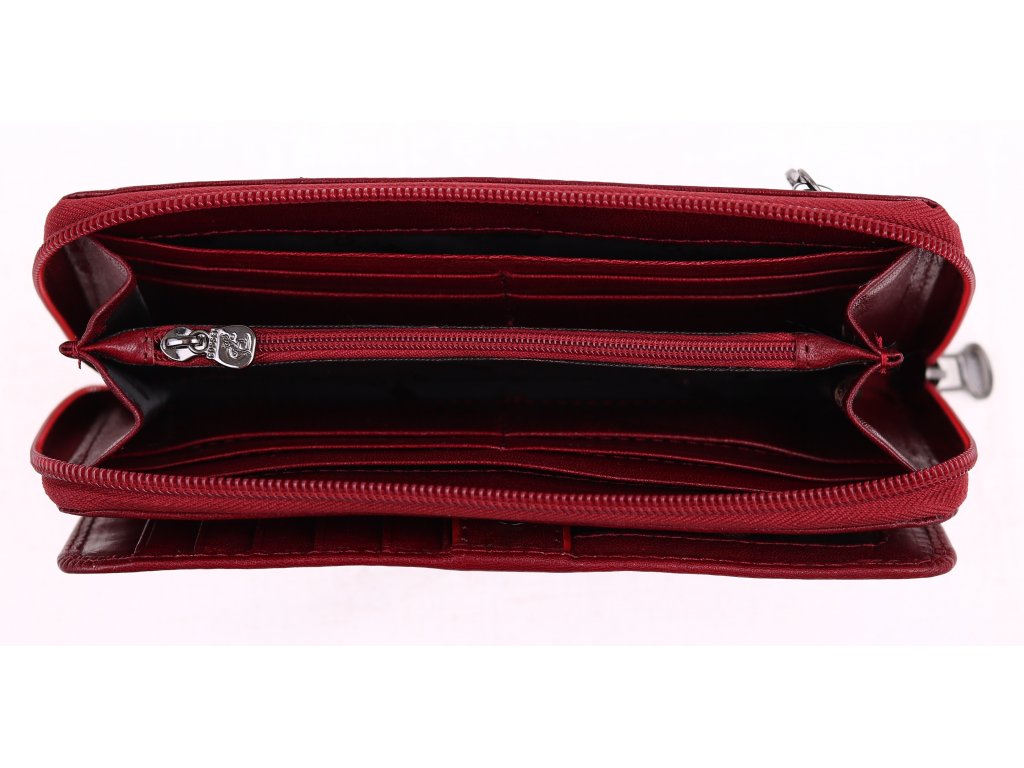Veľkoryso vybavená dámska kožená peňaženka z kvalitnej talianskej lícovej usne disponuje praktickým plne otváracím organizérom na doklady a karty. V druhej časti na zips bezpečne uschováte bankovky a drobné mince plus ďalšie dôležité doklady.
