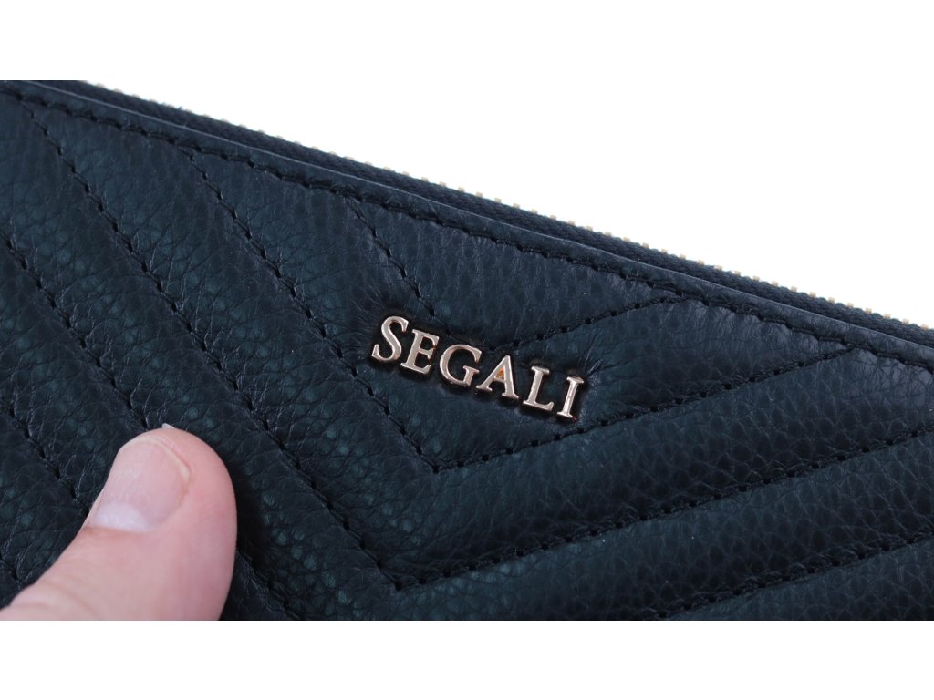 Moderná peračníková peňaženka od značky SEGALI je precízne spracovaná a zhotovená z kvalitnej hovädzej kože. Jej krásne prešívaný dizajn a zlaté doplnky ako je zips alebo logo sú v dnešnej dobe veľmi populárne. Táto peňaženka je navrhnutá tak, aby sa do vnútorného priestoru zmestili pohodlne české aj eurové bankovky. Peňaženka pojme dostatočné množstvo nevyhnutností a aj po naplnení nie je príliš silná do ruky. Vnútri peňaženky sa nachádzajú dve bočné priehradky vhodné na doklady, osem priehradiek na karty a tri prepážky rozdelené dvoma zipsovými mincovníkmi.