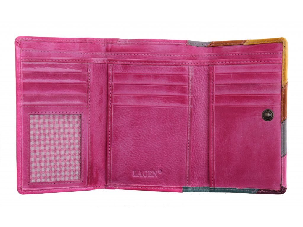 Veselá farebná peňaženka z pravej kože od značky Lagen vám urobí radosť každý deň. Veľké množstvo priehradok je perfektne rozložené v tejto peňaženke. Vďaka tomu uložíte dovnútra nielen všetky vaše karty a doklady, ale aj bankovky a mince.