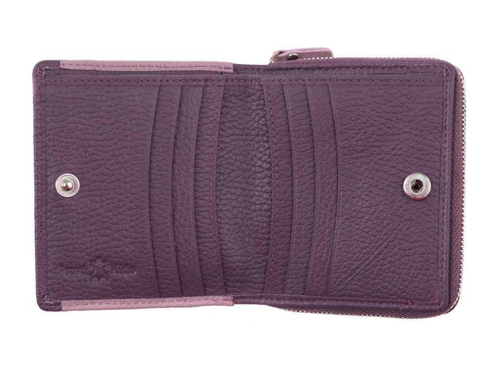 Malá, skladná a dvojfarebná – to charakterizuje túto peňaženku, ktorá je šikovne vymyslená. Má dva úložné priestory – mincovník prístupný zvonku so zapínaním na zips a priestor na bankovky a doklady so zapínaním na patent.