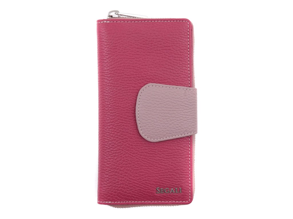 Veľká dámska kožená peňaženka na výšku so zapínaním Segali 7617 Magenta ružová