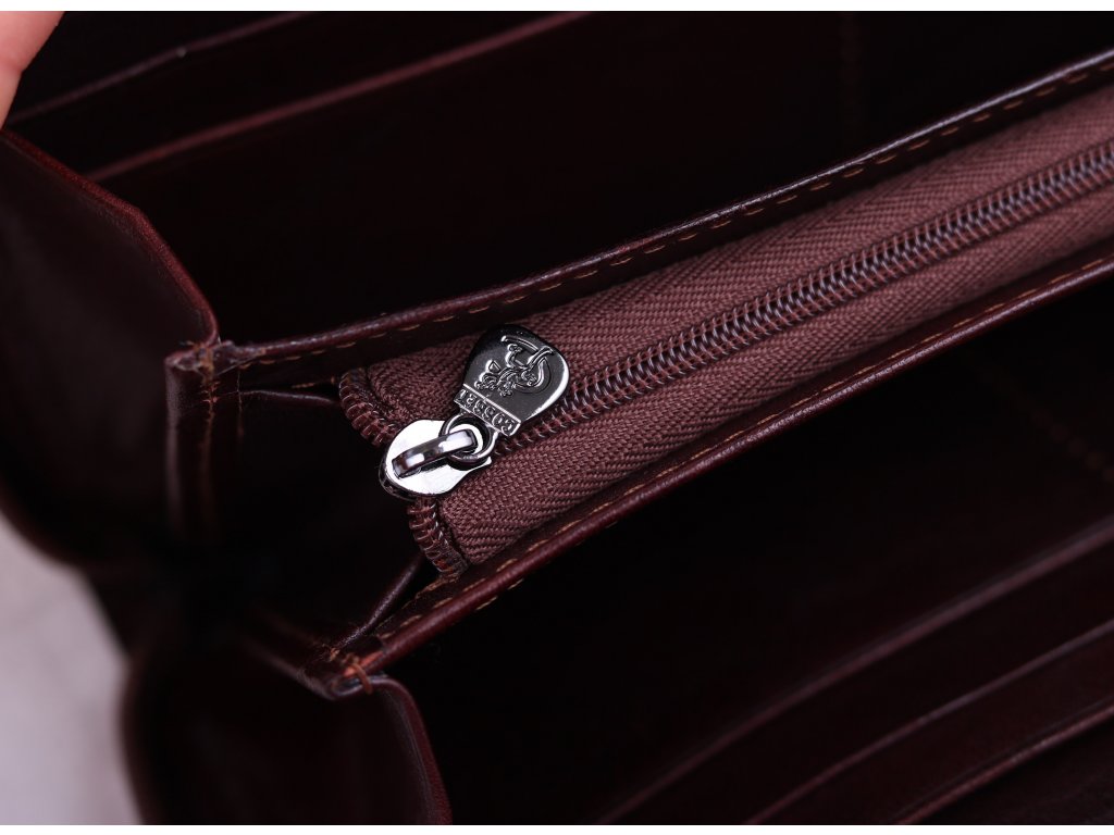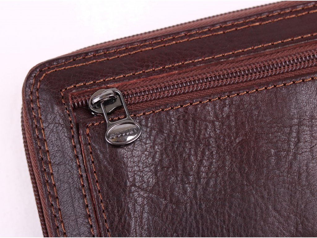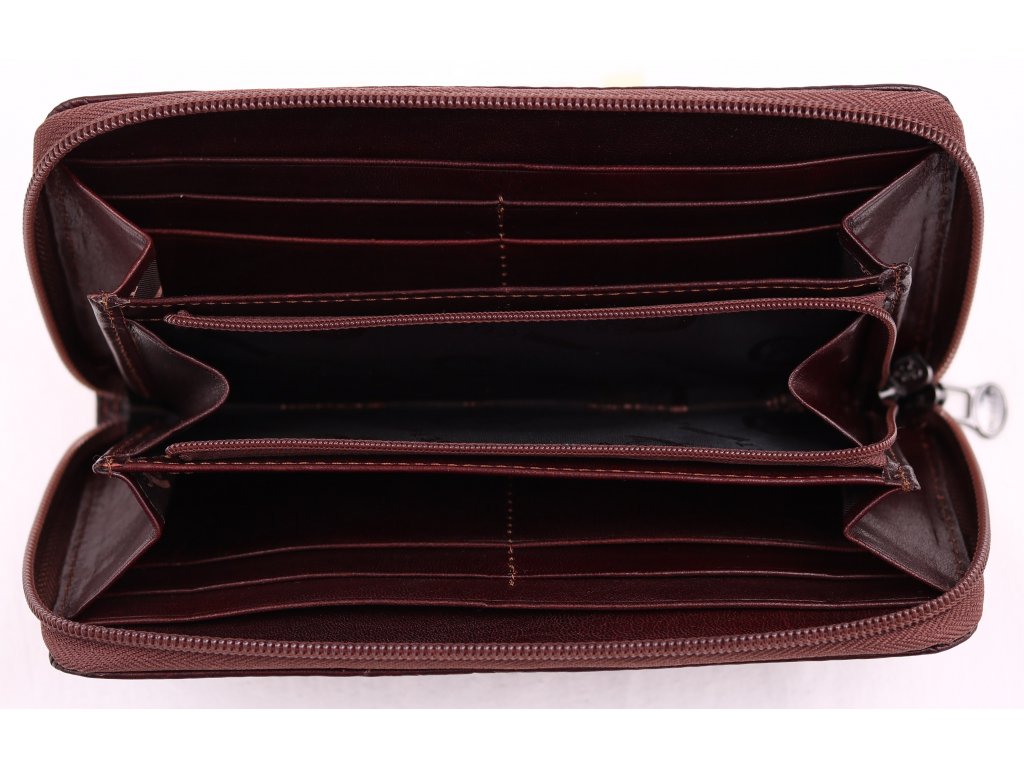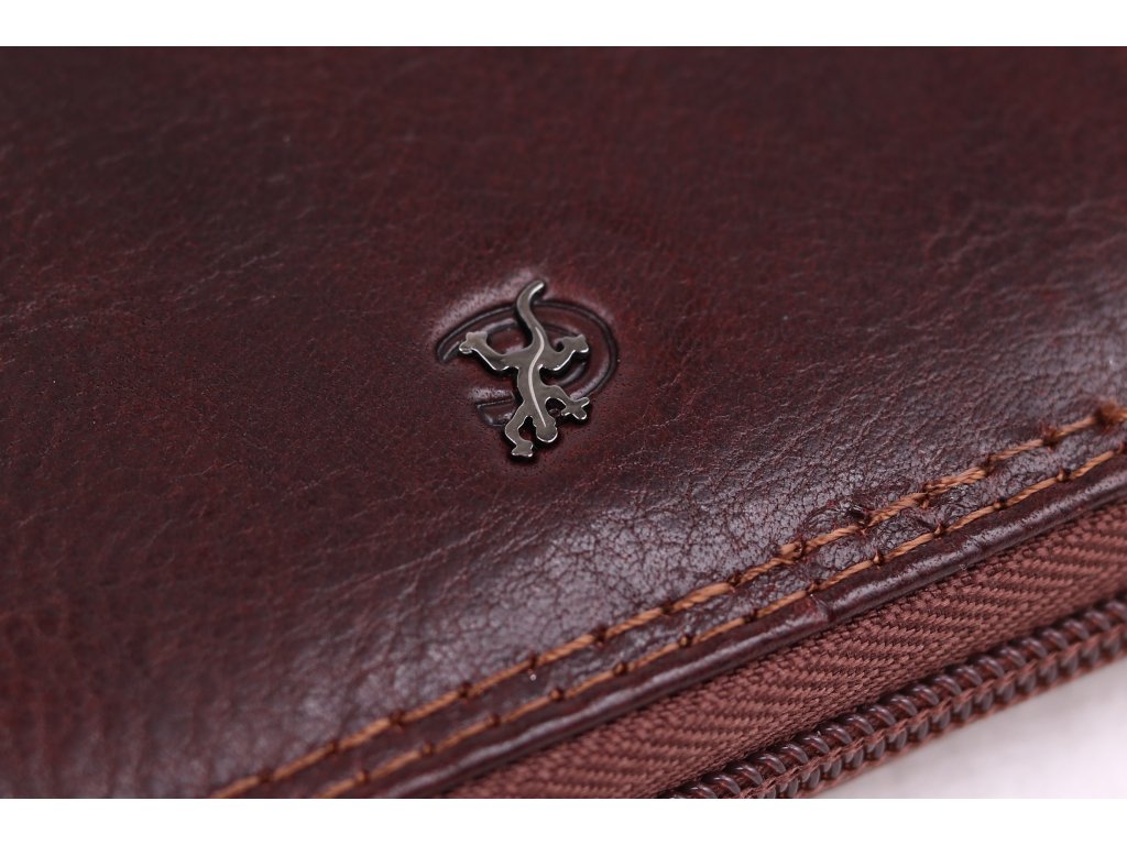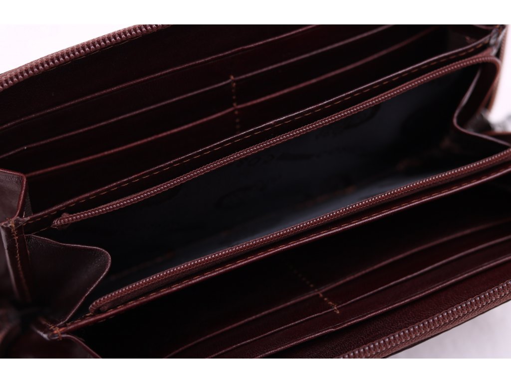 Luxusná veľká kožená peňaženka na zips v elegantnej hnedej farbe prekvapí prehľadným usporiadaním a veľkým množstvom priehradiek pre vaše doklady a rôzne karty. Prednosťou tejto dámskej koženej peňaženky je jej tvar peračníka a zips, ktorý zaisťuje okamžitý prístup k vašim peniazom a dokladom. Kvalitná talianska veľmi odolná hovädzina pri peňaženkách Cosset samozrejmosťou.