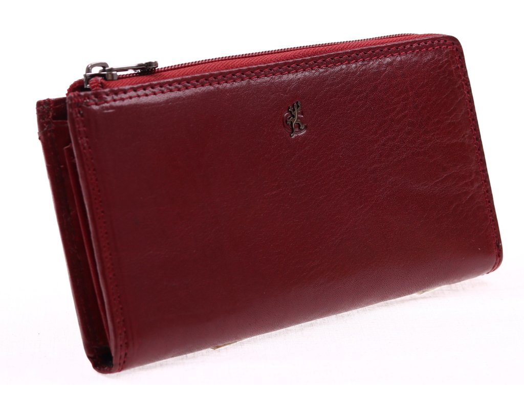 Veľká kožená peňaženka na zips Cosset 4513 Komodo tmavo červená