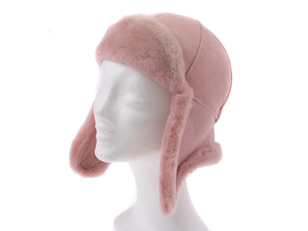 Detská kožušinová ušianka z ovčiny DU13 ružová