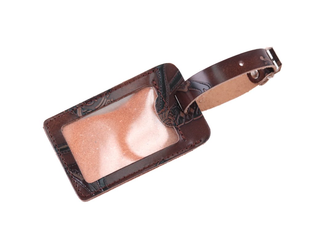 Kožená visačka na batožinu HAJN malá z hnedej hovädzej kože so vzorom