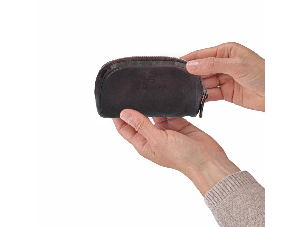 Kvalitná kožená kľúčenka od značky Noelia Bolger je vyrobená z hladkej anilínovej hovädziny. Na pripnutie kľúčov slúži retiazka s krúžkom. Kľúčenka je vybavená na zadnej strane aj malým vreckom na zips. Prednú stranu zdobí gravírované logo.