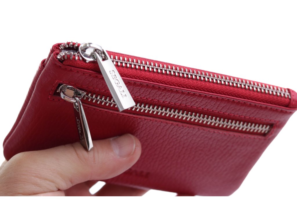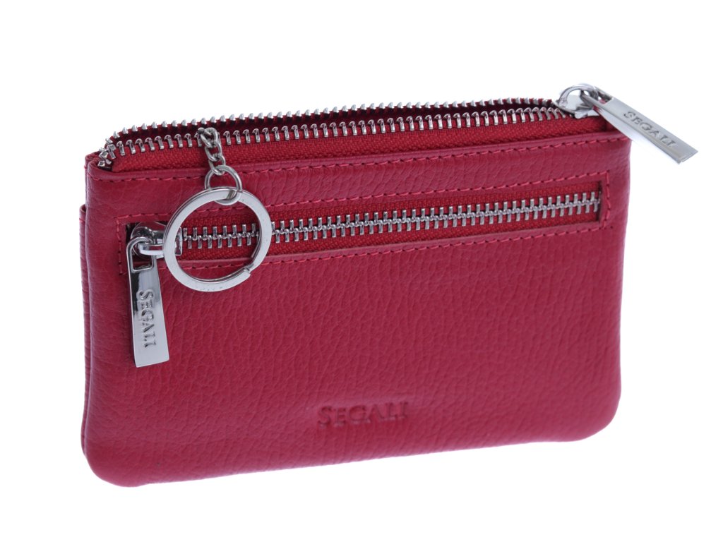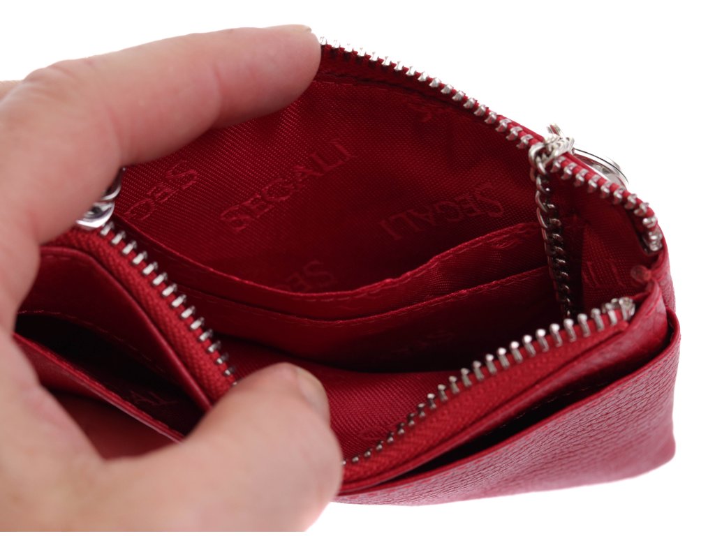 Väčšia kožená kľúčenka v čiernej farbe od značky Segali. Vo vnútri nájdete krúžok na kľúče a dve vrecúška na karty, na prednej strane malé vrecko na zips a na zadnej strane ešte jedno malé vrecko.