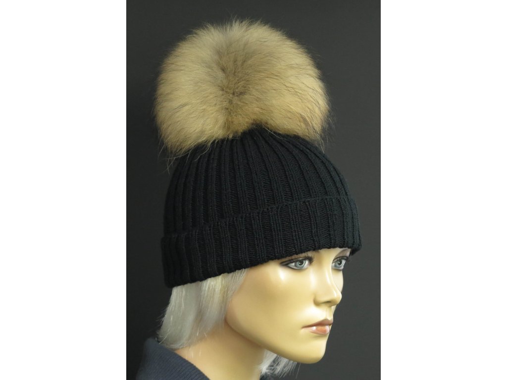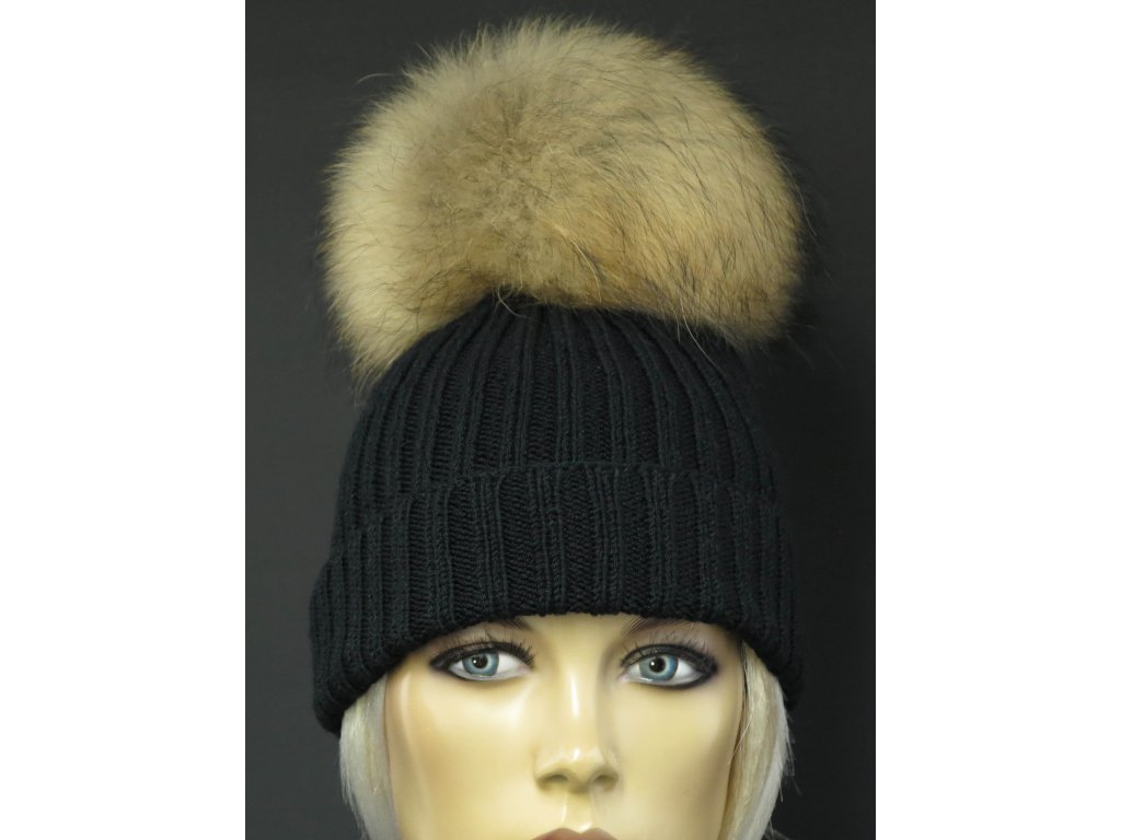 Ručne pletená čiapka s kožušinovým brmbolcom 628 čierna