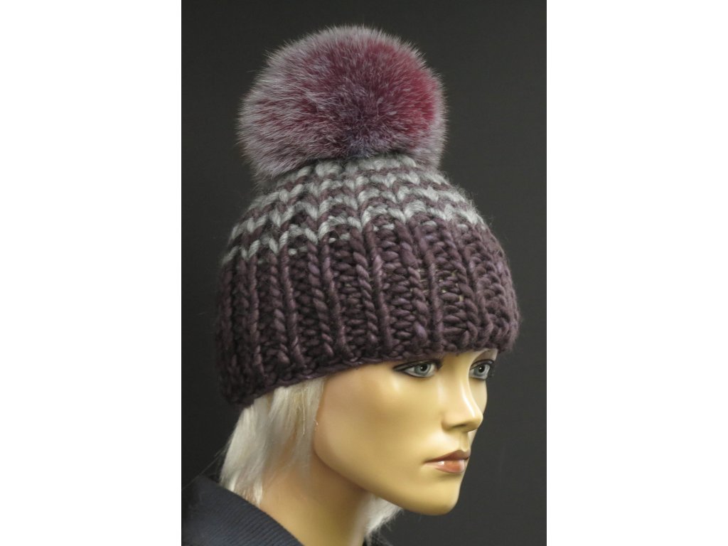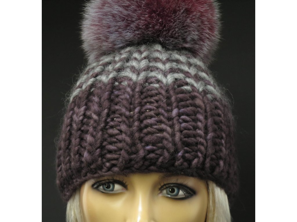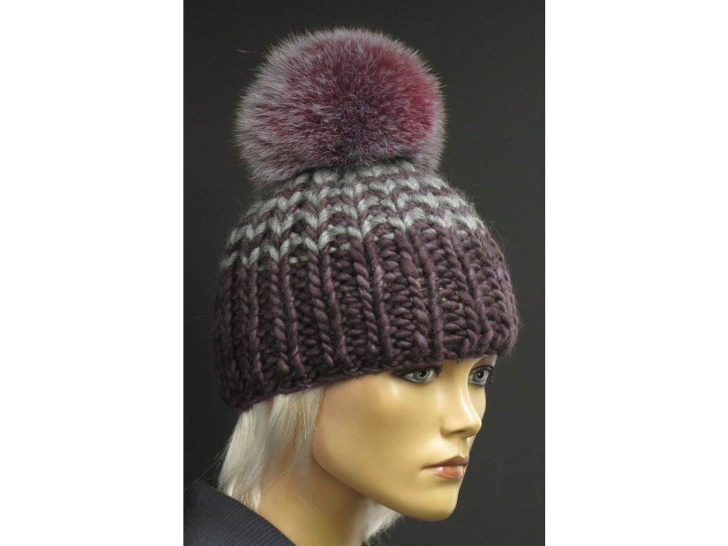 Ručne pletená čiapka s pravým kožušinovým brmbolcom MONIQUE 528 šedobordová
