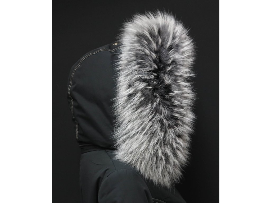 Na výrobu kožušinových lemov používame pravú kožušinu z fínskeho mývalovca Saga Royal – to znamená certifikovanú a vždy tú najlepšiu kvalitu kožušiny, ktorá sa vyznačuje maximálnou hustotou (bohatosťou) a dlhým vlasom.
