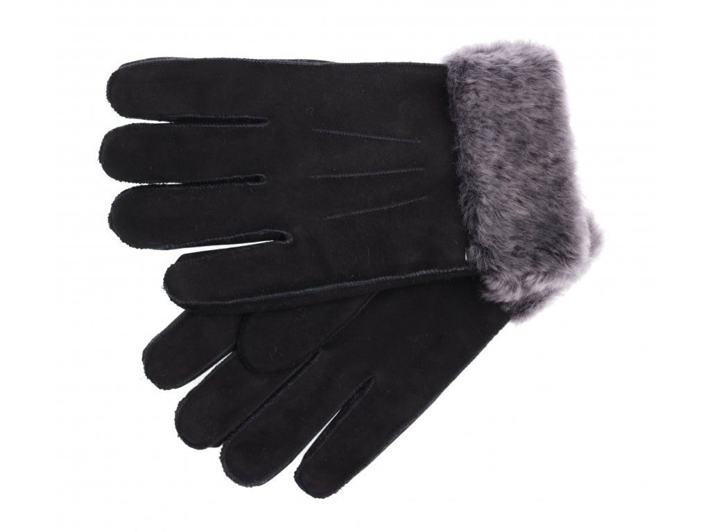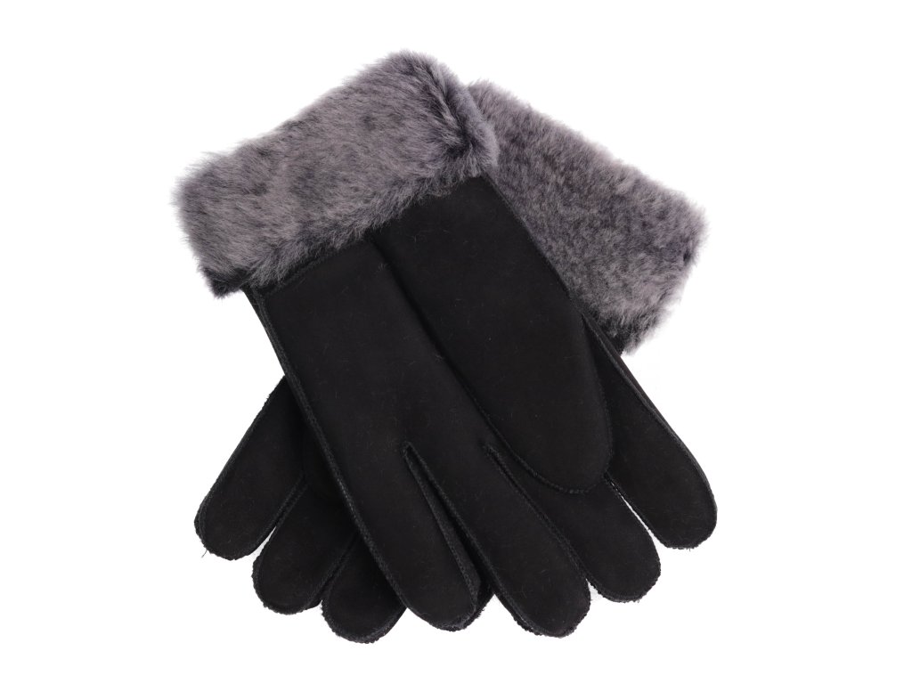Kožušinové rukavice prstové PR69 čierne velúr veľ. M/L melírovaný vlas kožušiny