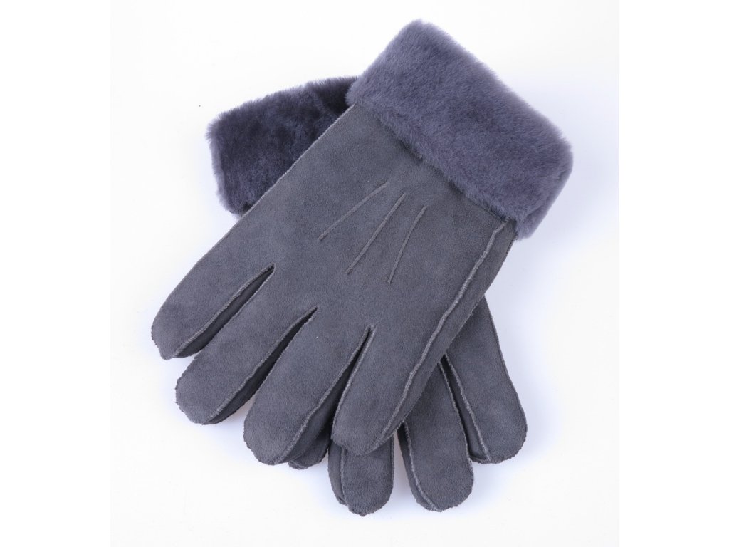 Kožušinové rukavice prstové PR9 sivé veľ. L/XL