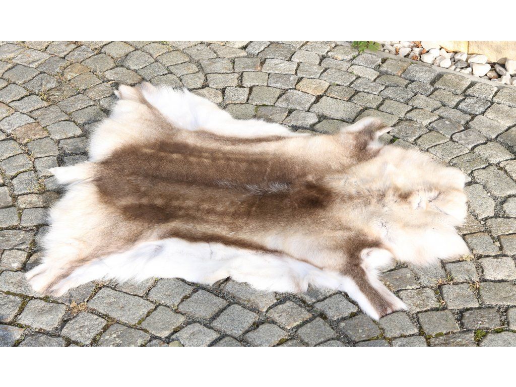Nádherná kožušina z polárneho soba na stenu vášho interiéru. Luxusné sobie kožušina je určená na dekoráciu stien a stien, alebo ako prehoz cez pohovku alebo iný nábytok. Na podlahu nie je táto koža úplne vhodná, pretože vlas sobie kožušiny sa môže chôdzou po kožušine ľahko zničiť a vyzerať. Srsť soba je veľmi hustá a pevná, na dotyk pôsobí jemným príjemným dojmom. Farba: biele okraje na brušnej časti prechádzajú do odtieňa kávy s mliekom, stredná chrbtová časť je čokoládovo hnedá. Rozmer kožušiny: dĺžka 138 cm, šírka 100 cm. Zaslaná vám bude kožušina z fotografie.