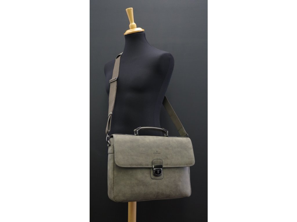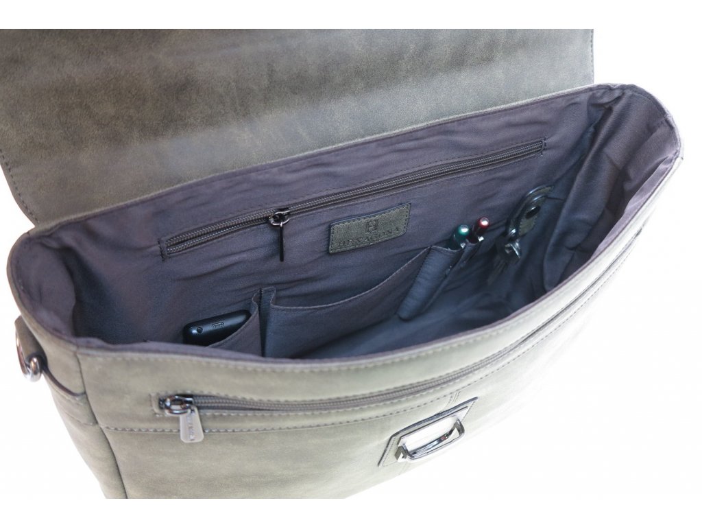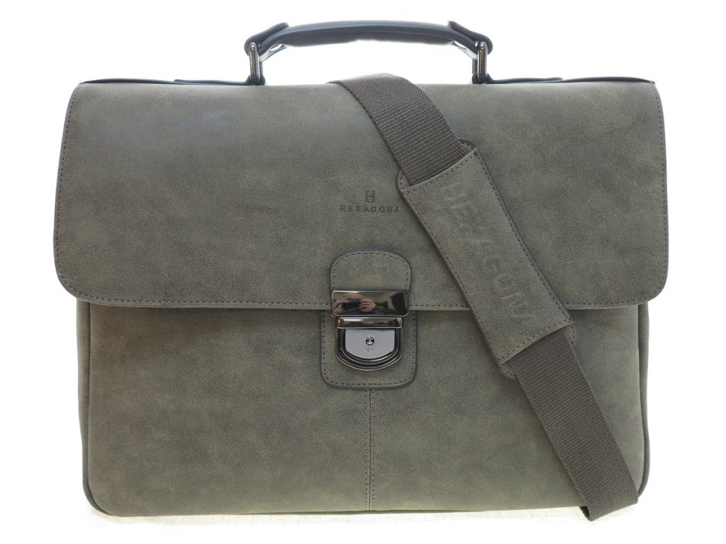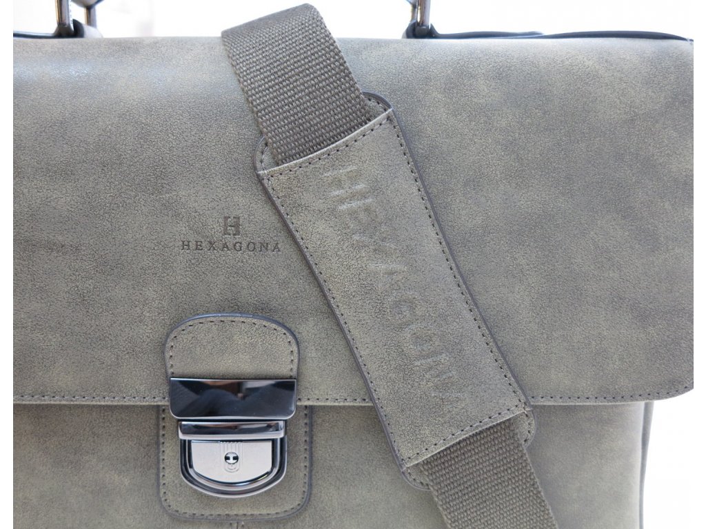 Elegantná jednodielna aktovka v netradičnej sivohnedej farbe od francúzskej značky Hexagona doplnená pripínateľným ramenným popruhom.