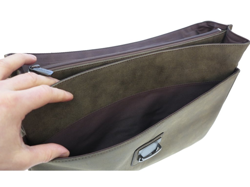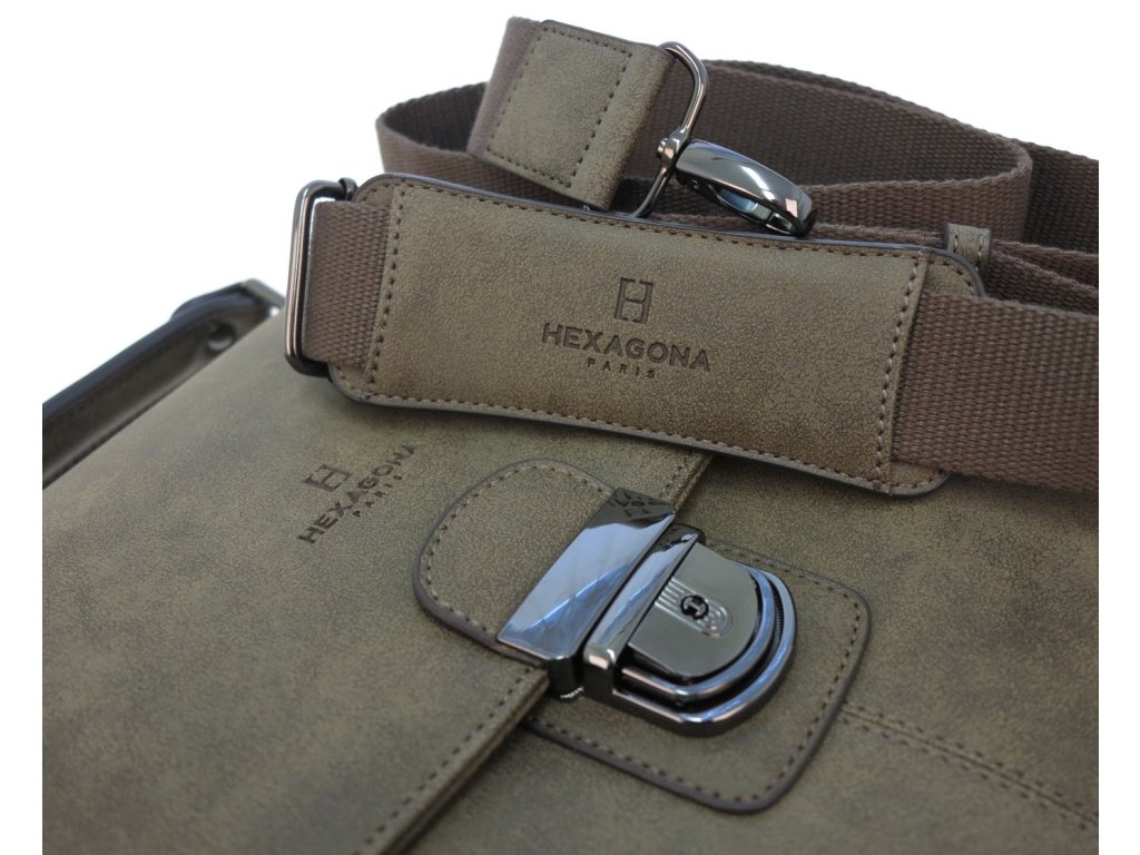 Elegantná dvojdielna aktovka v netradičnej sivohnedej farbe od francúzskej značky Hexagona s odnímateľným popruhom cez rameno.