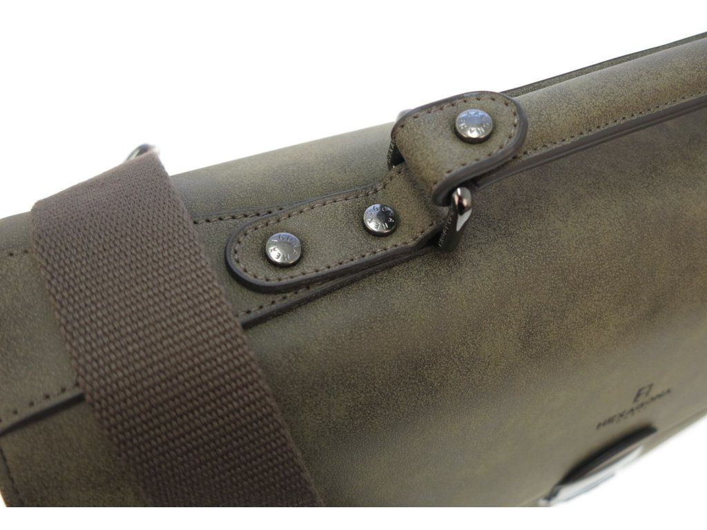 Na výrobu tejto pánskej tašky bola použitá vysokokvalitná syntetická koža „koženka“ s matným ľahko brúseným povrchom. Budete nadšení luxusným vzhľadom tejto umelej kože. Radi by sme pri tejto taške zdôraznili odolnosť a nízku hmotnosť materiálu, precízne spracovanie a kvalitu komponentov. Značka Hexagona ponúka vkusné a dizajnovo vydarené tašky s výborným pomerom ceny a kvality.