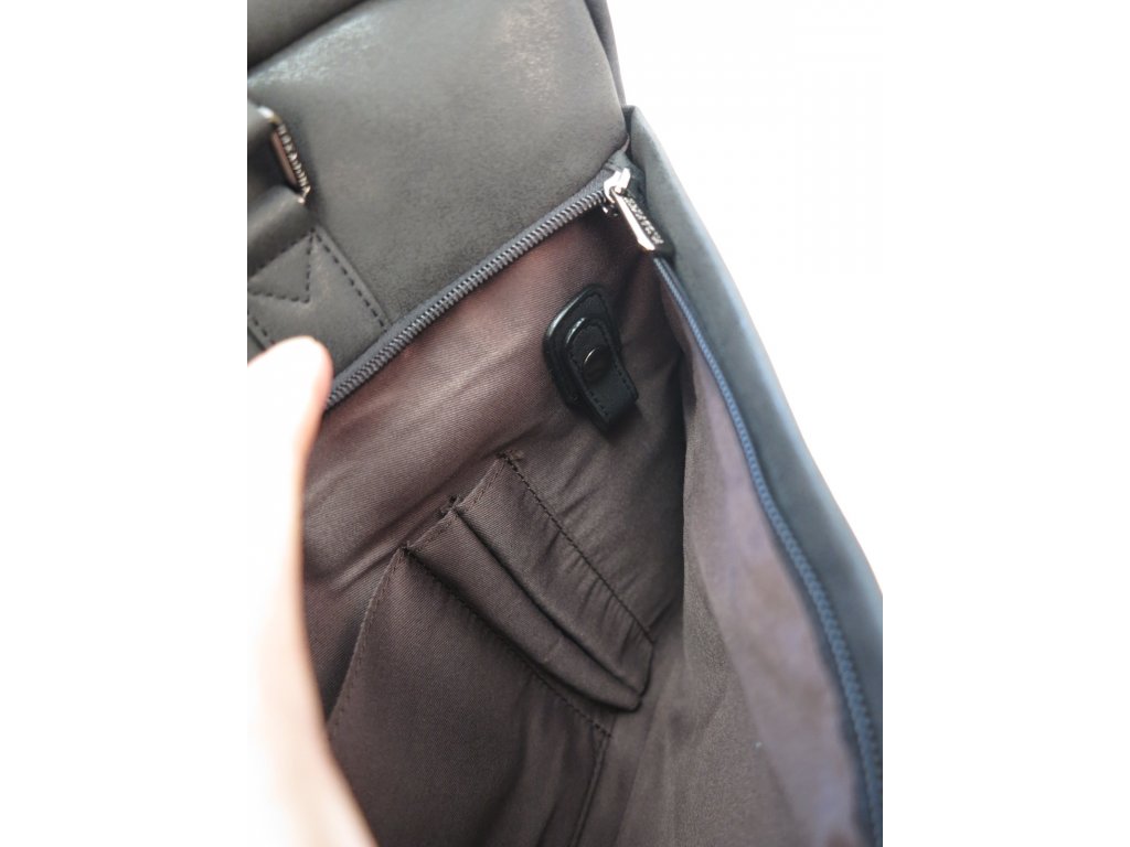 - predné vonkajšie vrecko na zips s organizérom, ktorý obsahuje dve priehradky (na peňaženku, smartfón,...), dve priehradky na perá, pútko na kľúče