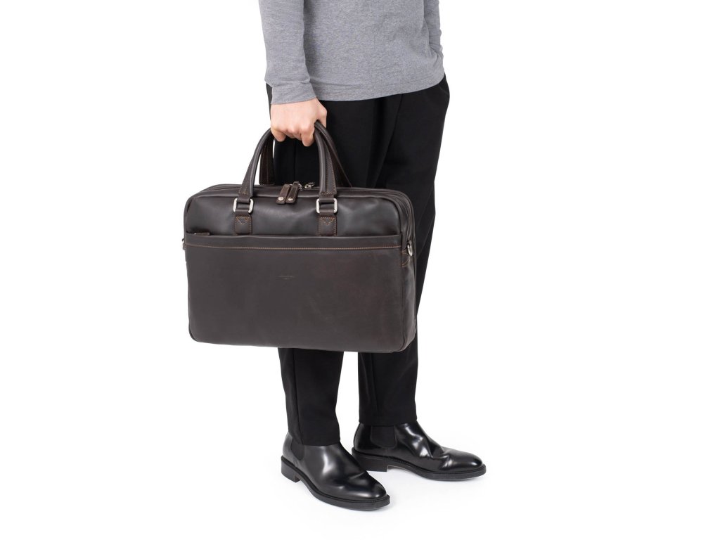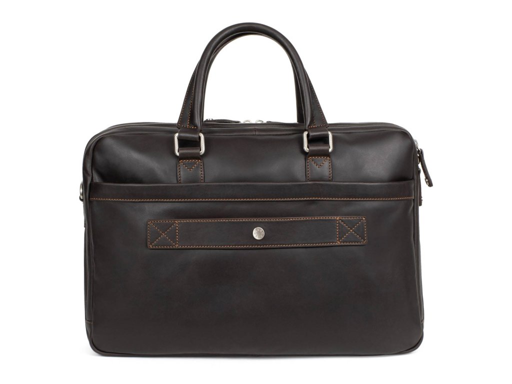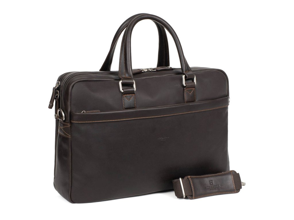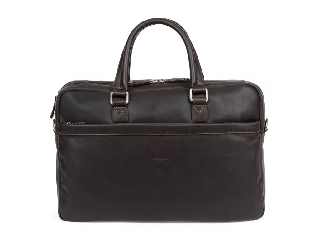 Väčšia elegantná business taška na notebook od francúzskej značky Hexagona z pevnej, veľmi kvalitnej a na dotyk príjemnej olejovanej hovädzej kože.
