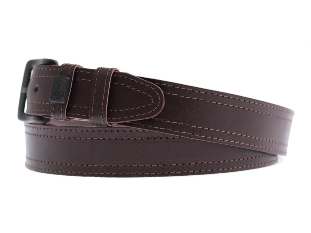 Pánsky kožený opasok Black Hand 003-78 hnedý s hnedým štepovaním